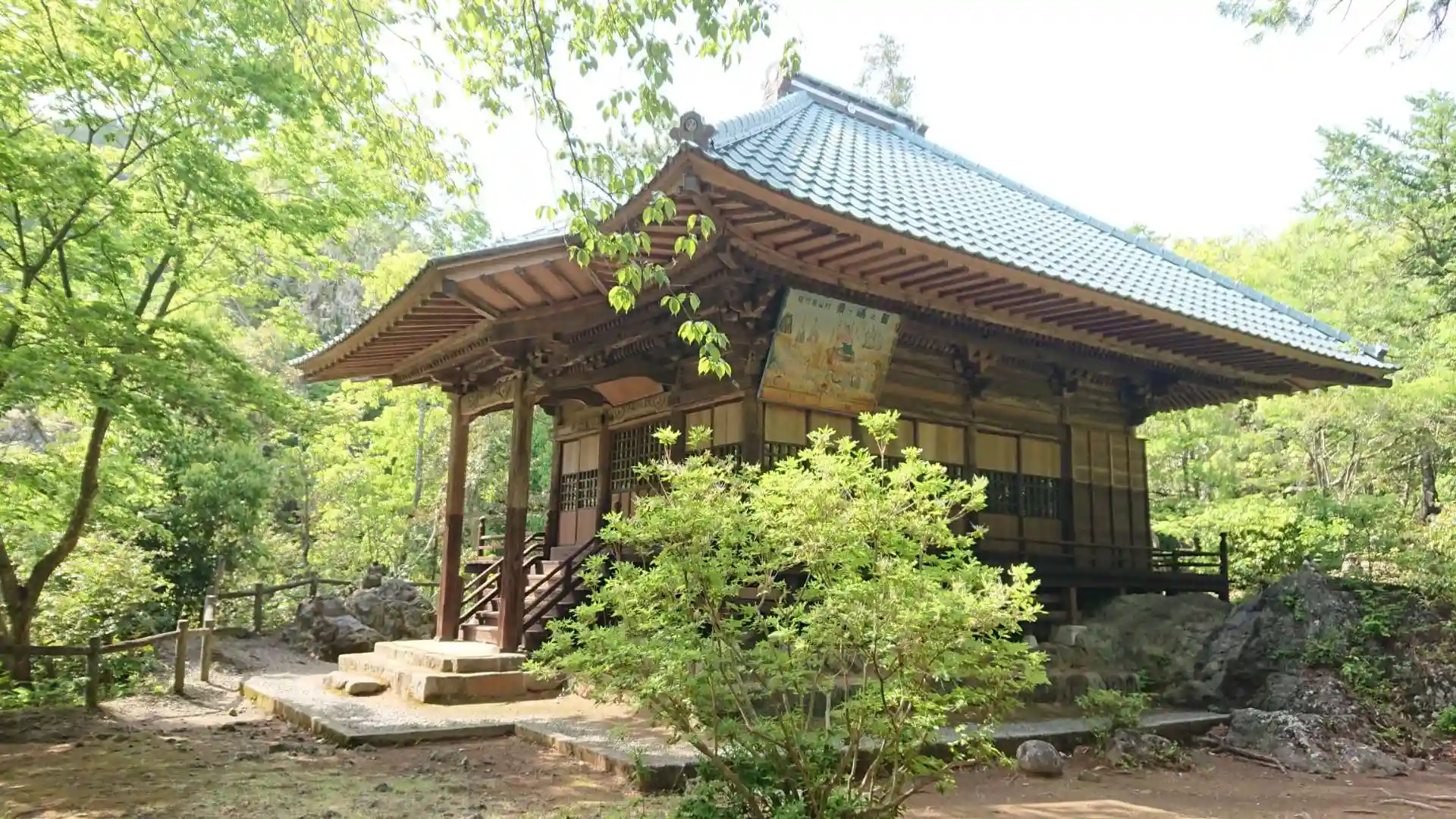 本堂の正面、縁起が書かれています。