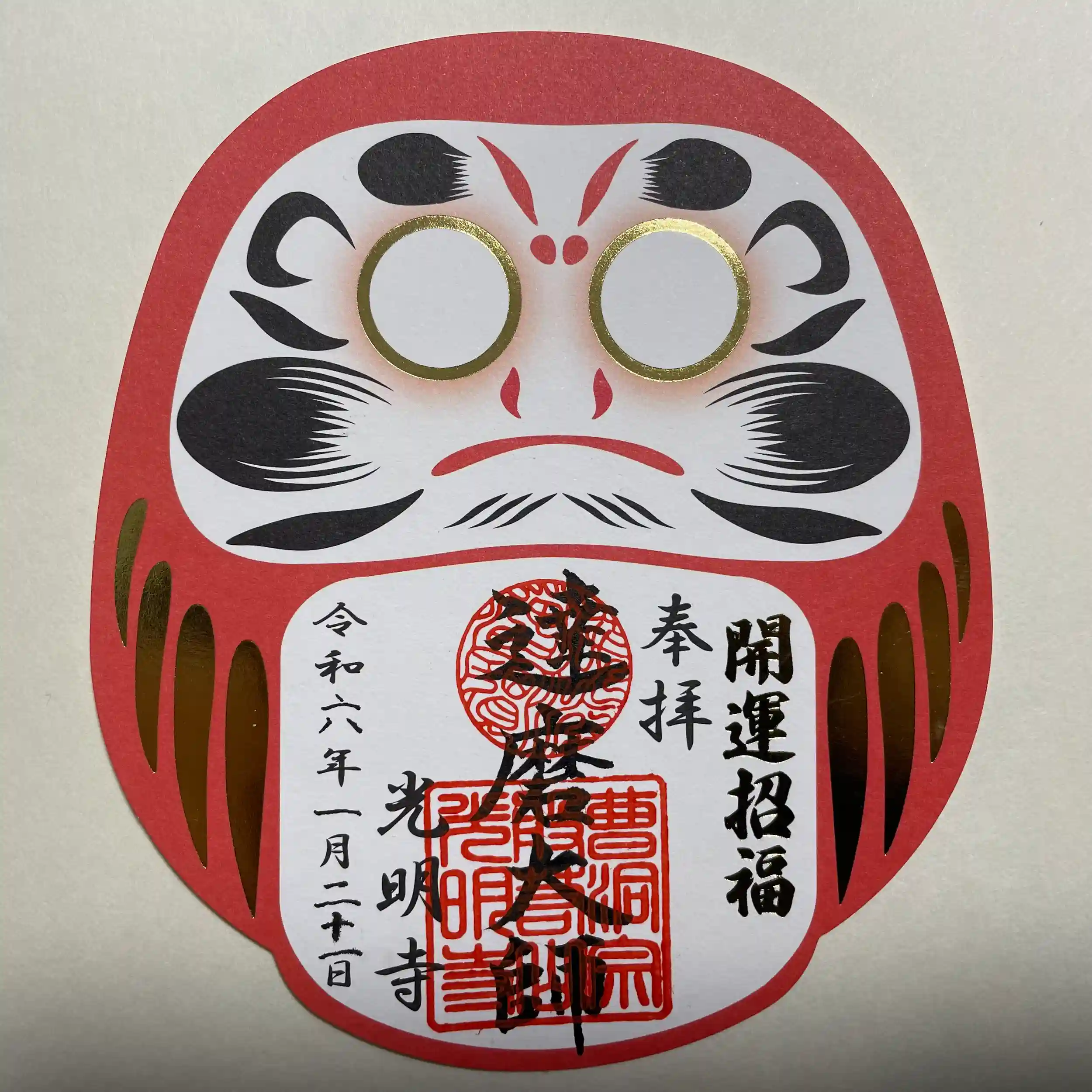 『ダルマの型抜き金の箔押し御朱印』