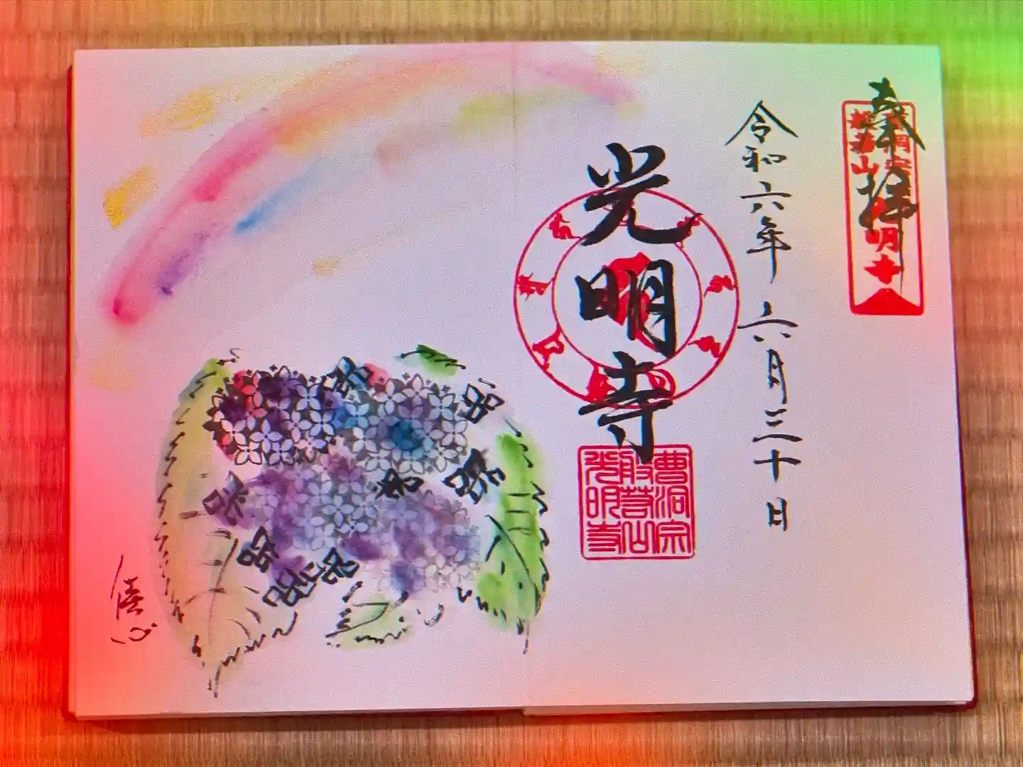 紫陽花と雨上がりの虹🌈✨の御朱印です。