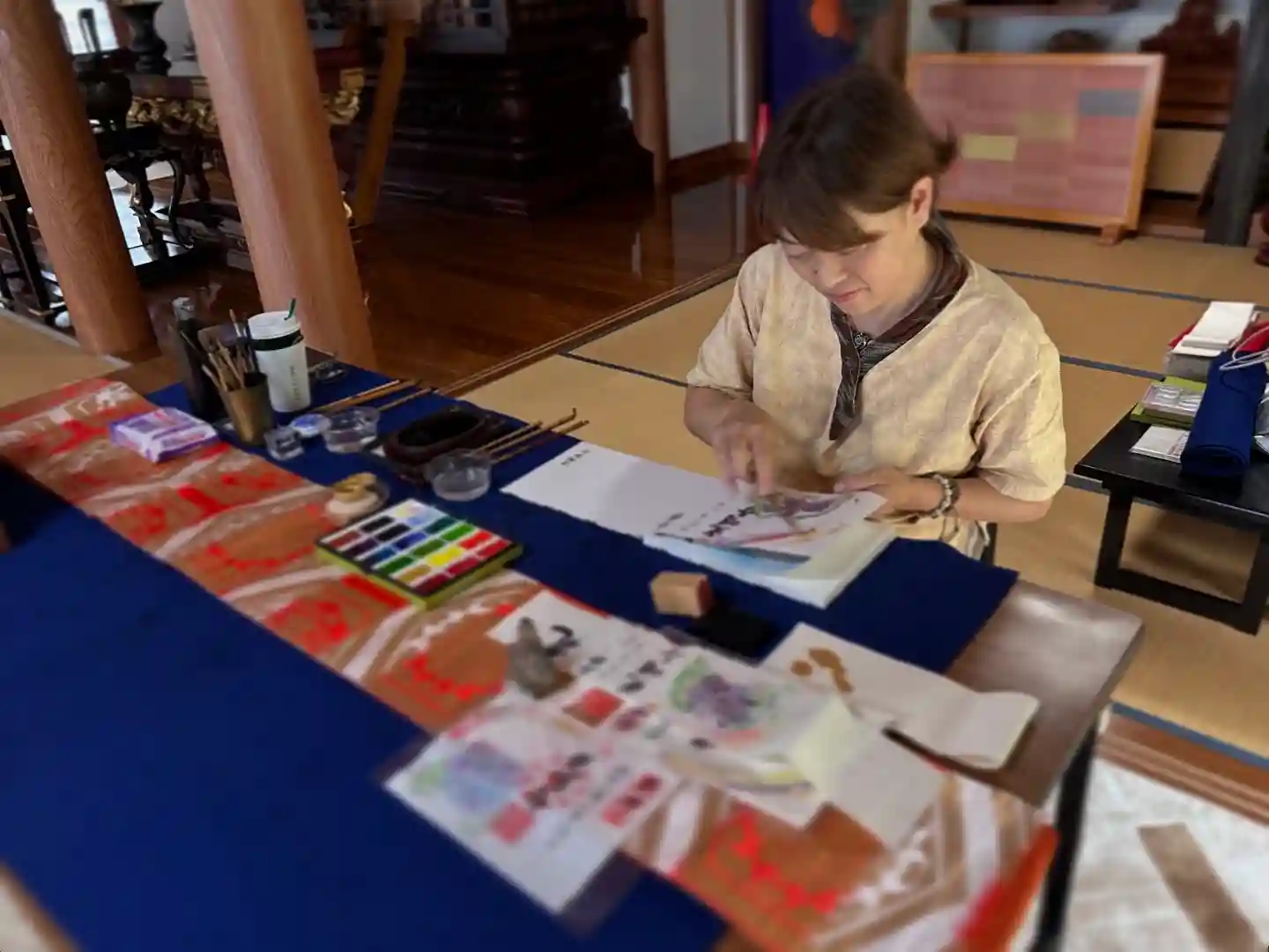 静かな本堂内で、先生と対面しながらの御朱印頒布をさせていただきました。