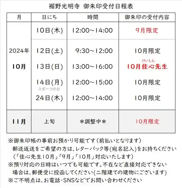 10月の限定御朱印のご案内