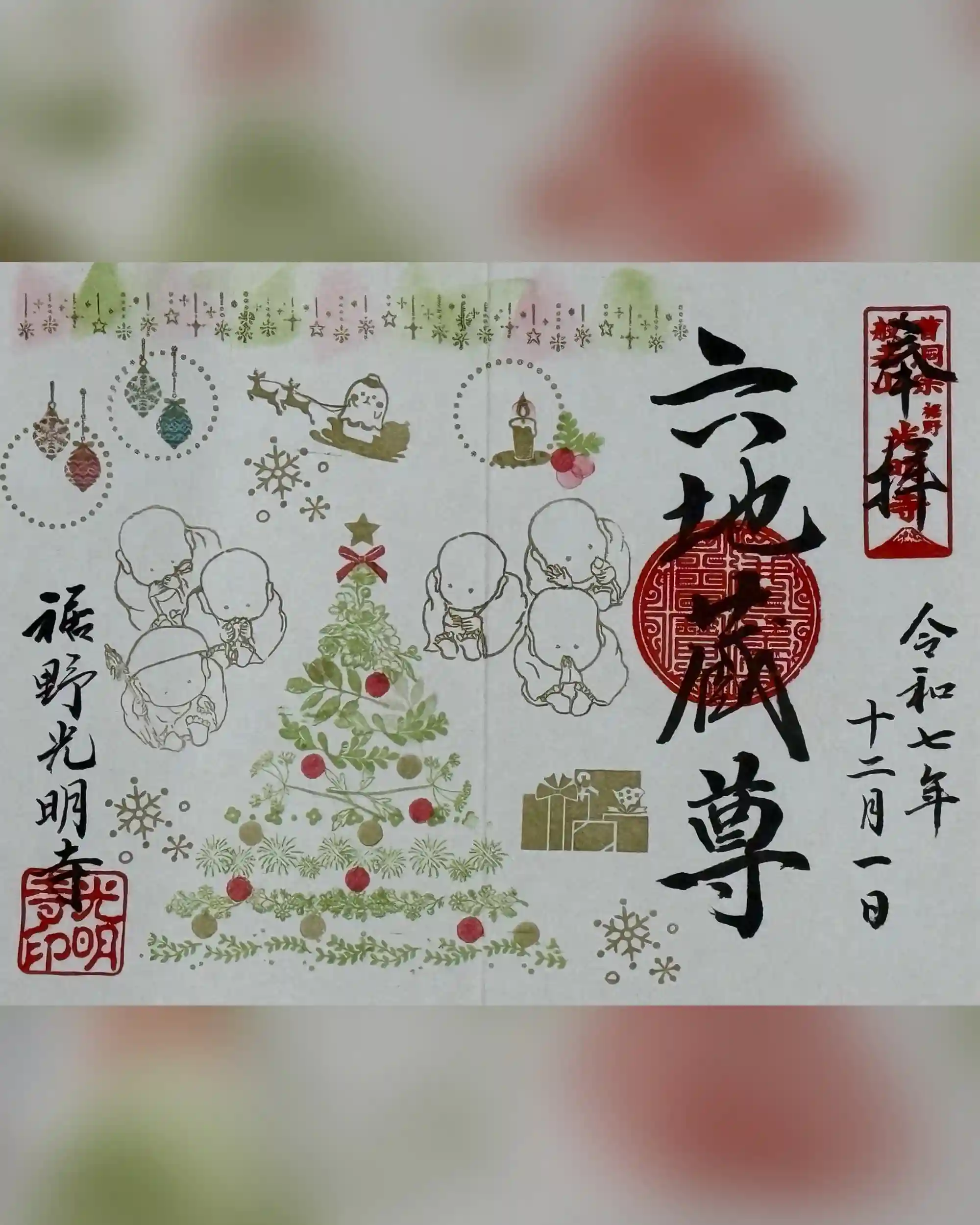 2025年12月の月替り御朱印、六地蔵様とツリー🎄