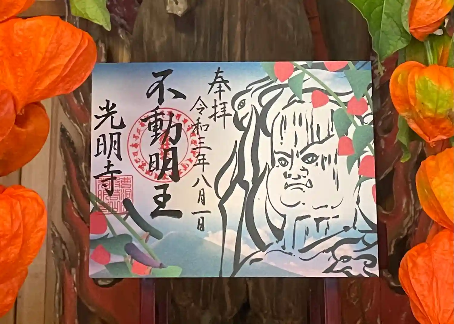 裾野光明寺には、平安時代に制作された不動明王と毘沙門天などを安置している「感應堂(かんのうどう)」という建物があることから、「感應殿」の御朱印を頒布しています。