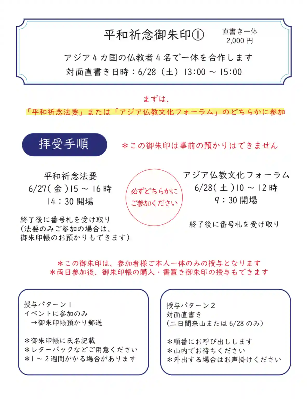 世界平和祈念イベントの朱印を押します