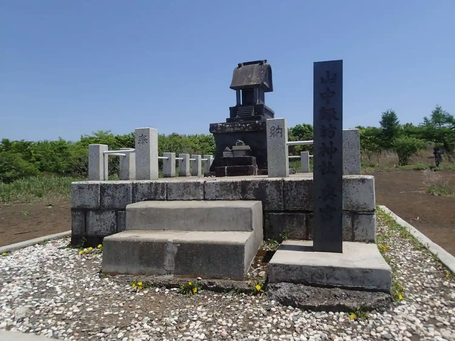 山中湖の南東方向で山梨県と神奈川県の県境にある明神山の山頂に鎮座されています。富士山と山中湖を見渡…