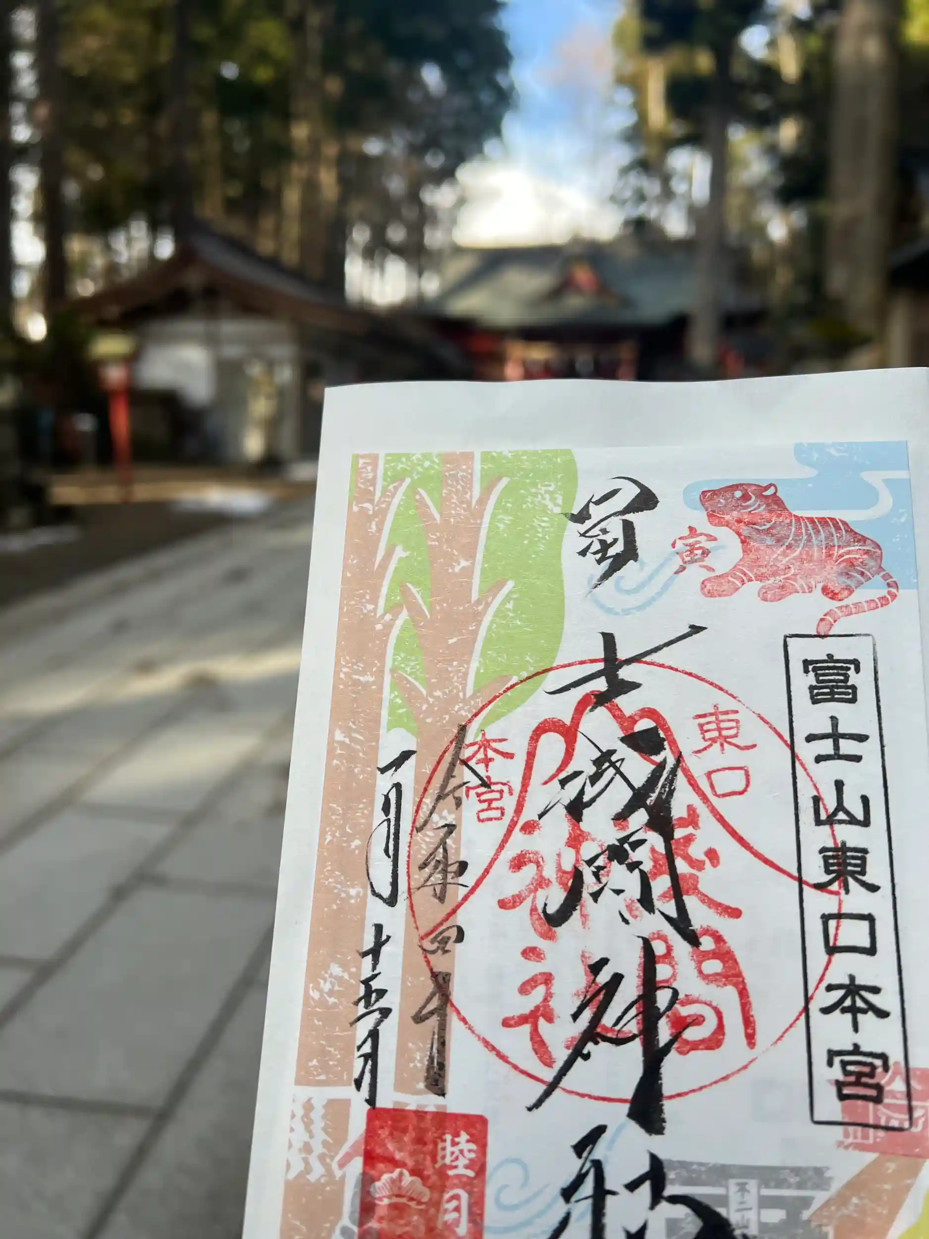 神職さまの存在で富士山が雄大ながら清らかに感じ、子供時分に東京へ向かう新幹線の中から初めて見た富士山に、ここどこ?『静岡』と聞いて凄いな~と感動したのを思い出しました。凍滝やつらら、獅子の親子?、鷹のような眼の寅さま。初めて見る神聖な景色を見せて頂きありがとうございます。富士山東口本宮冨士浅間神社さまの御朱印も素晴らしいですね。🌿🐯🗻🌸🎗️