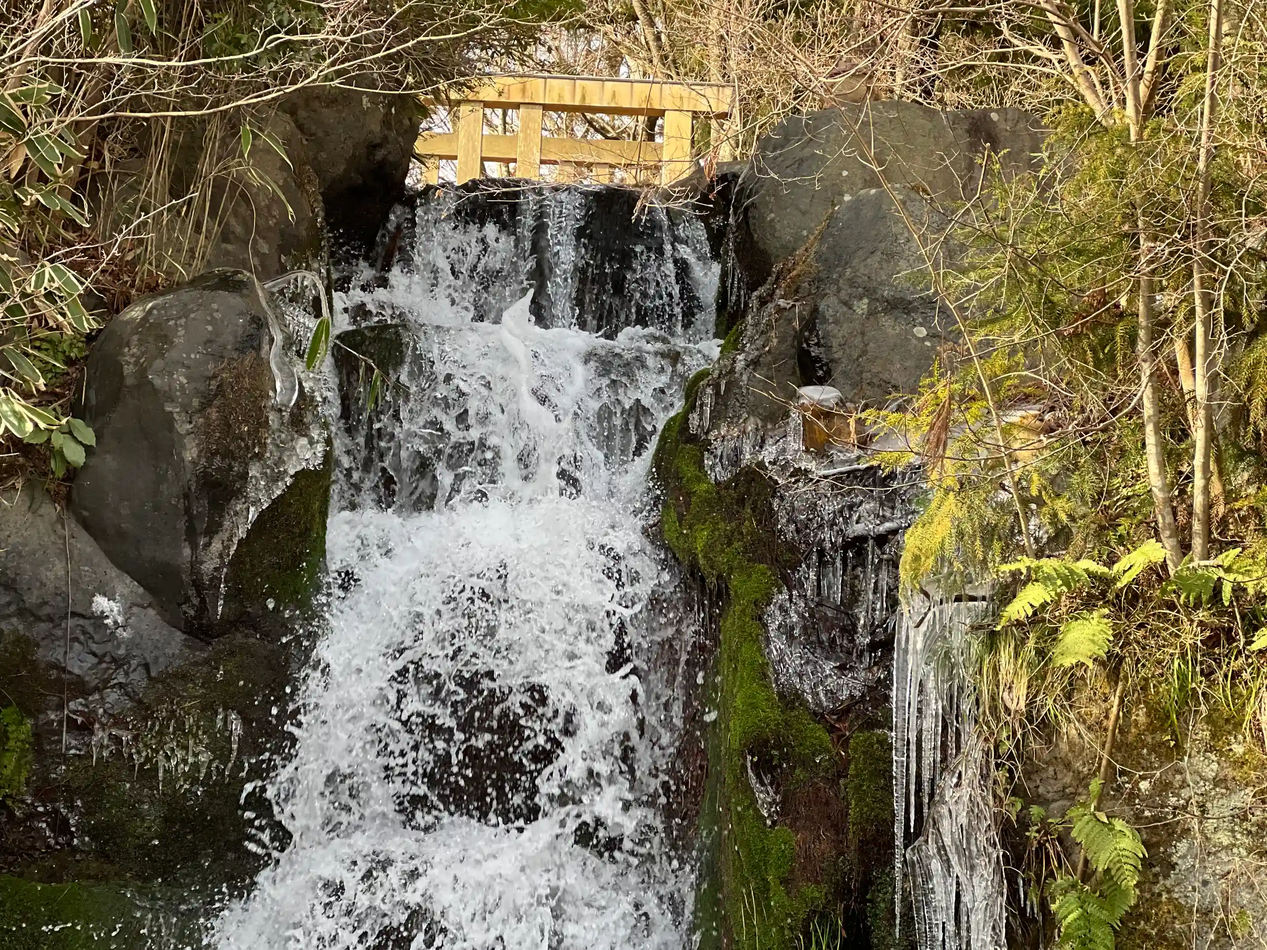 入口の滝は凍っていて氷柱になってました。