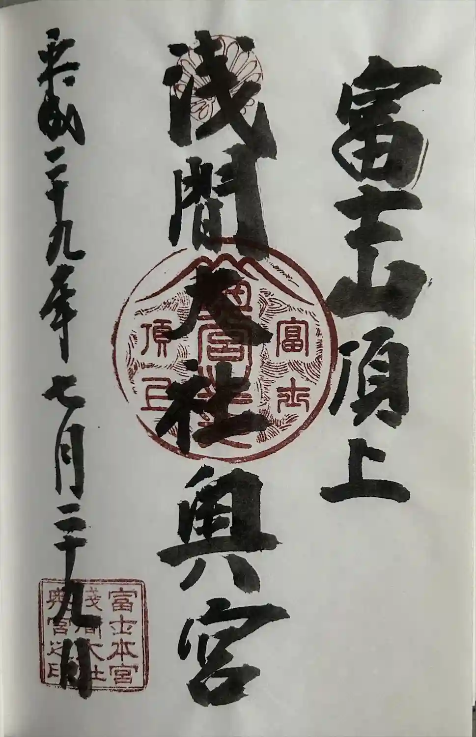 富士山山頂 浅間大社奥宮と久須志神社の御朱印です。