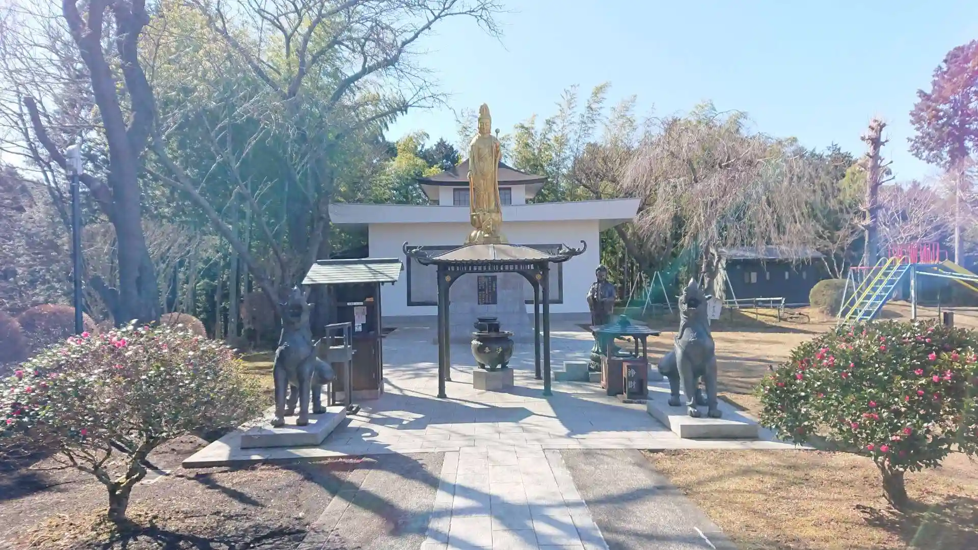 1964年に、御殿場市出身の三徳の社長の堀内定良が私財を投じて開いた公園で、日本山妙法寺の他、富士仏舎利塔・日本庭園があります。