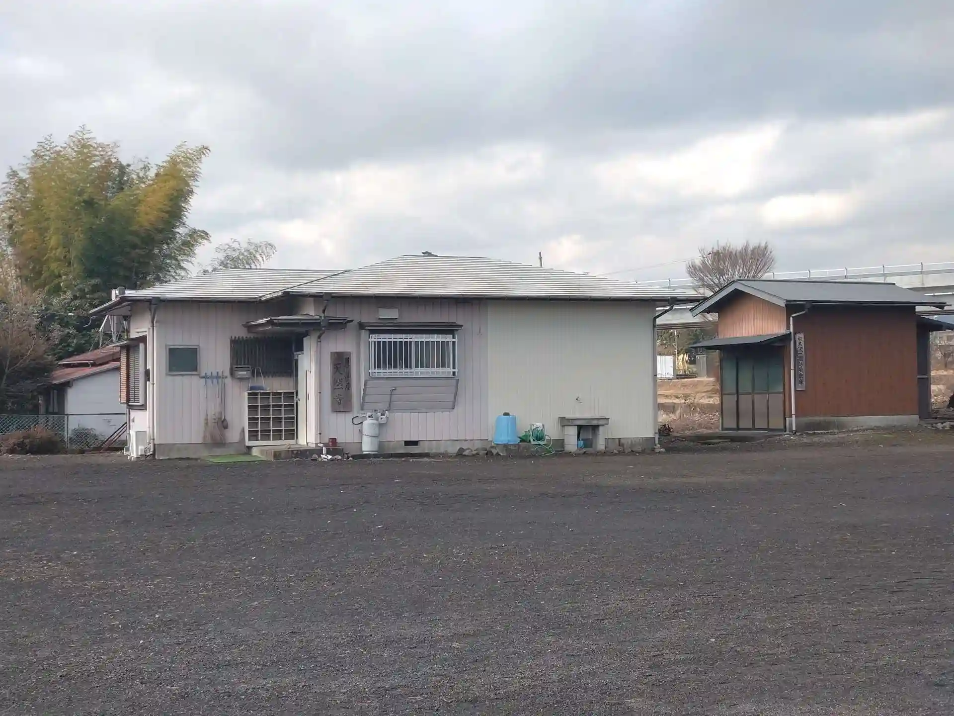 広い空き地のような場所の奥に建物があり、天然寺の文字があります。廃寺のように思われます。現在は大乗寺が管理しているようです。