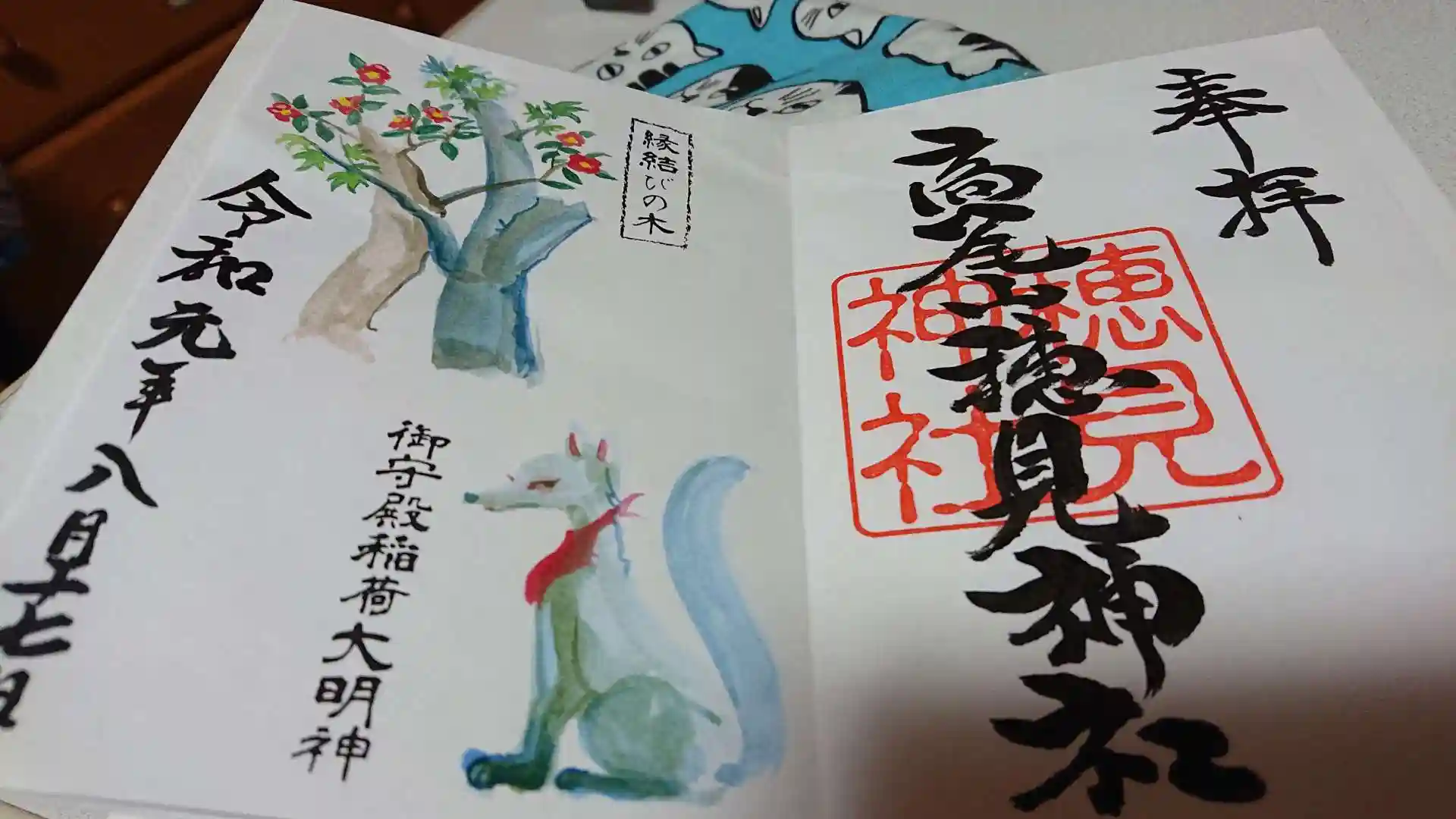 住宅街で高校の隣にあるひっそりとした神社で2つの神社があります。御朱印はいただけますが、少しあるいた場所にある和菓子屋さんになります。書き置きですが、凝った絵柄のものがあります