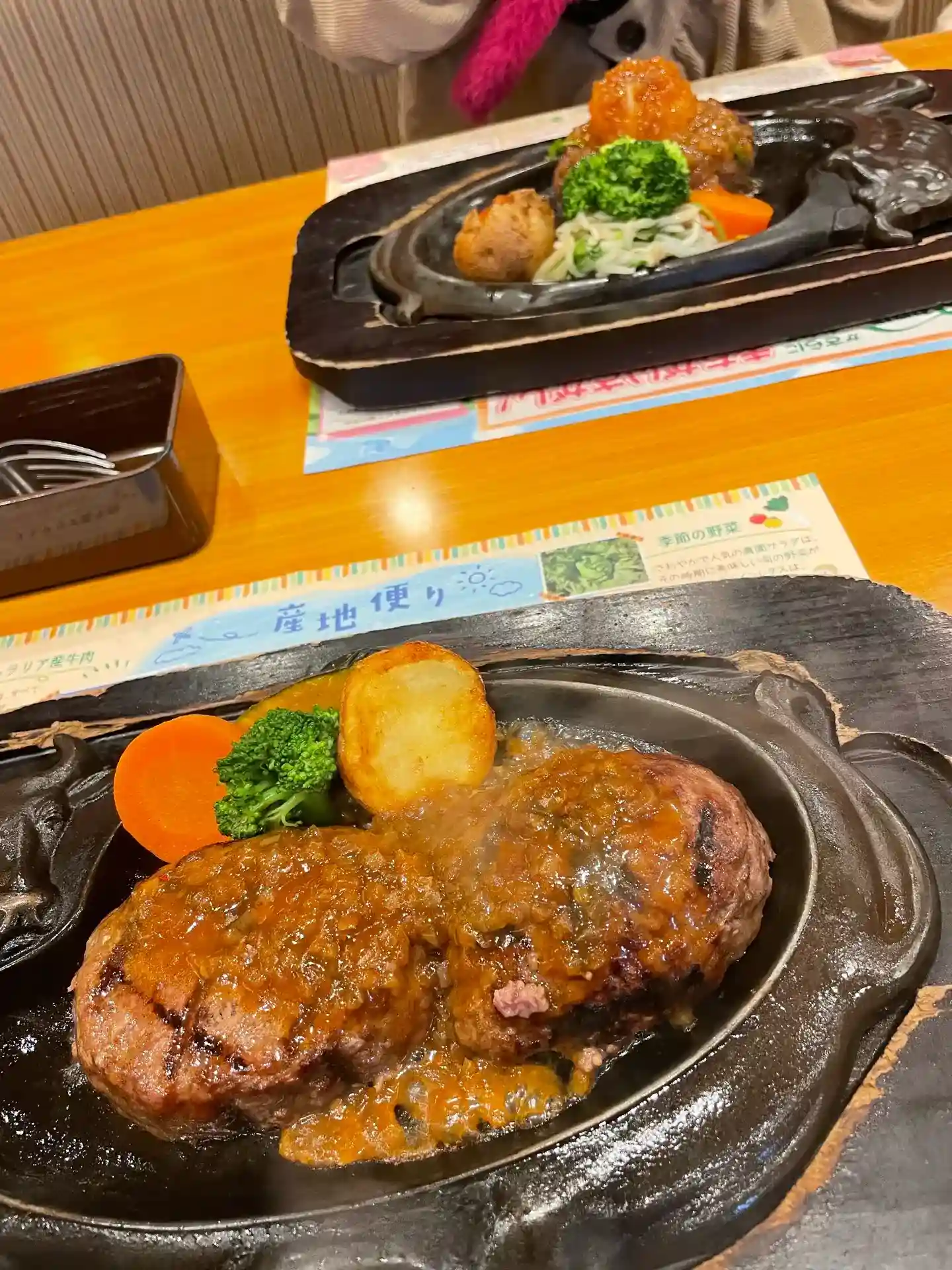 ゲンコツハンバーグ(手前)と和風ハンバーグ(奥)を頂きました♪初めて食べましたが、とても美味しかったのでまた来ようと思っています😁