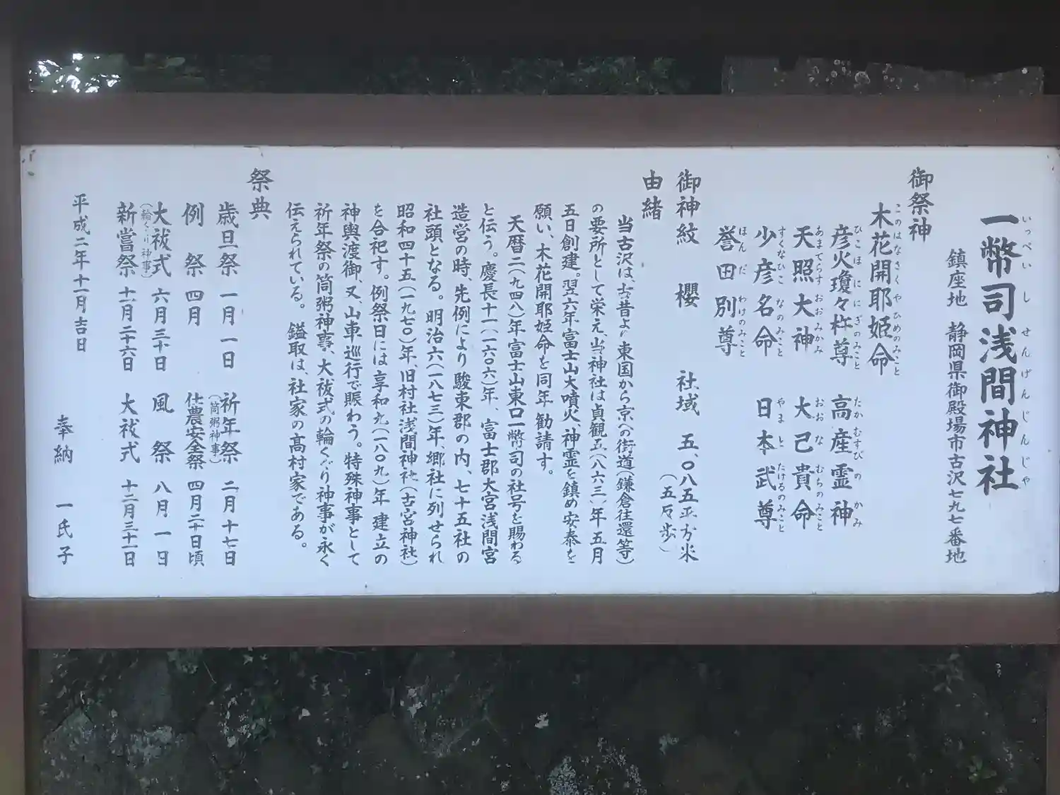 一幣司浅間神社(いっぺいしせんげんじんじゃ)は静岡県御殿場市に鎮座する神社。旧社格は郷社。