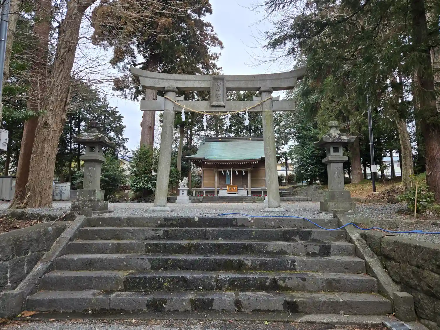 🍁県道と高低差があるので運転注意です。数台とめれる駐車スペースあり。畑の中に伸びる参道が伸びてます。🌸大坂浅間神社では湯立神楽が行われており沼田子之神社の湯立神楽とともに令和4年に国の無形民俗文化財に指定されています。沼田と違って境内に由緒も湯立神楽のことも何も掲示されてきませんでした。