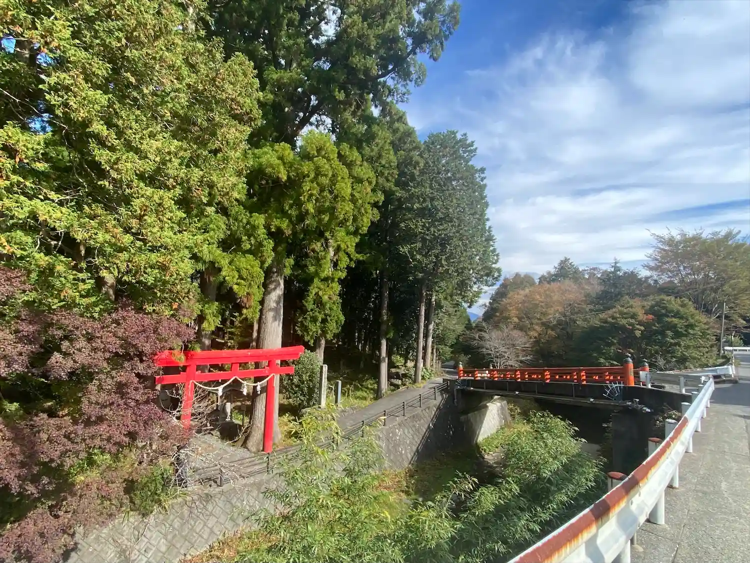 突然見える赤い鳥居と桟橋