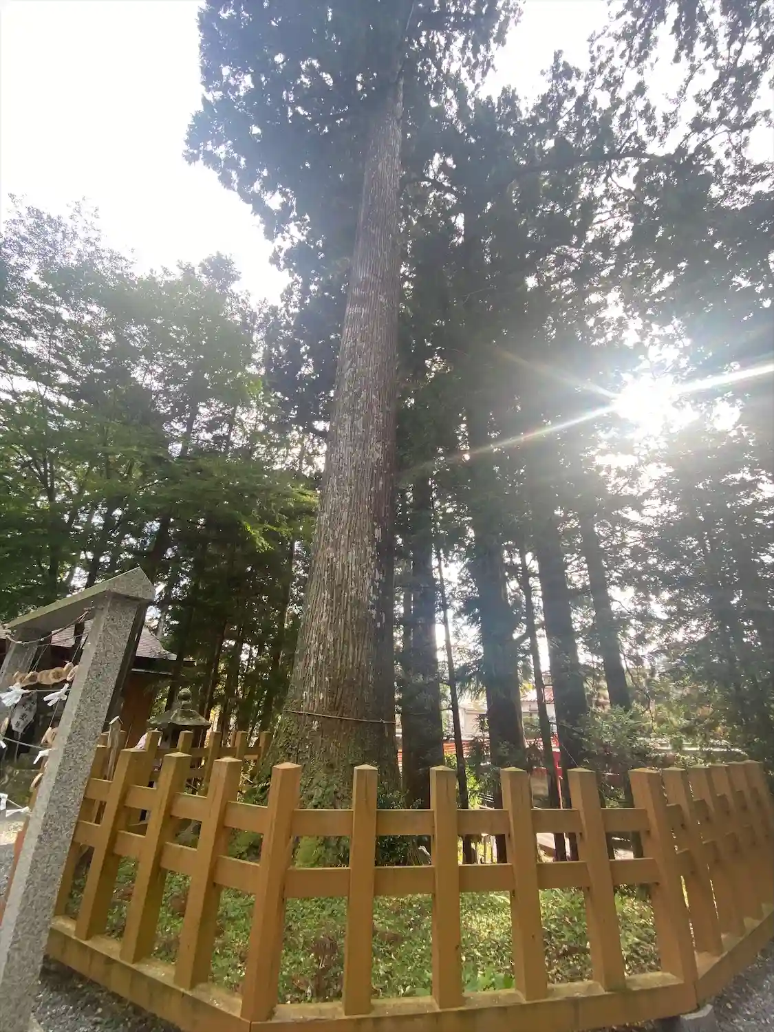 灯篭にあるハートの小窓から社殿をのぞいて写真を撮りました!
