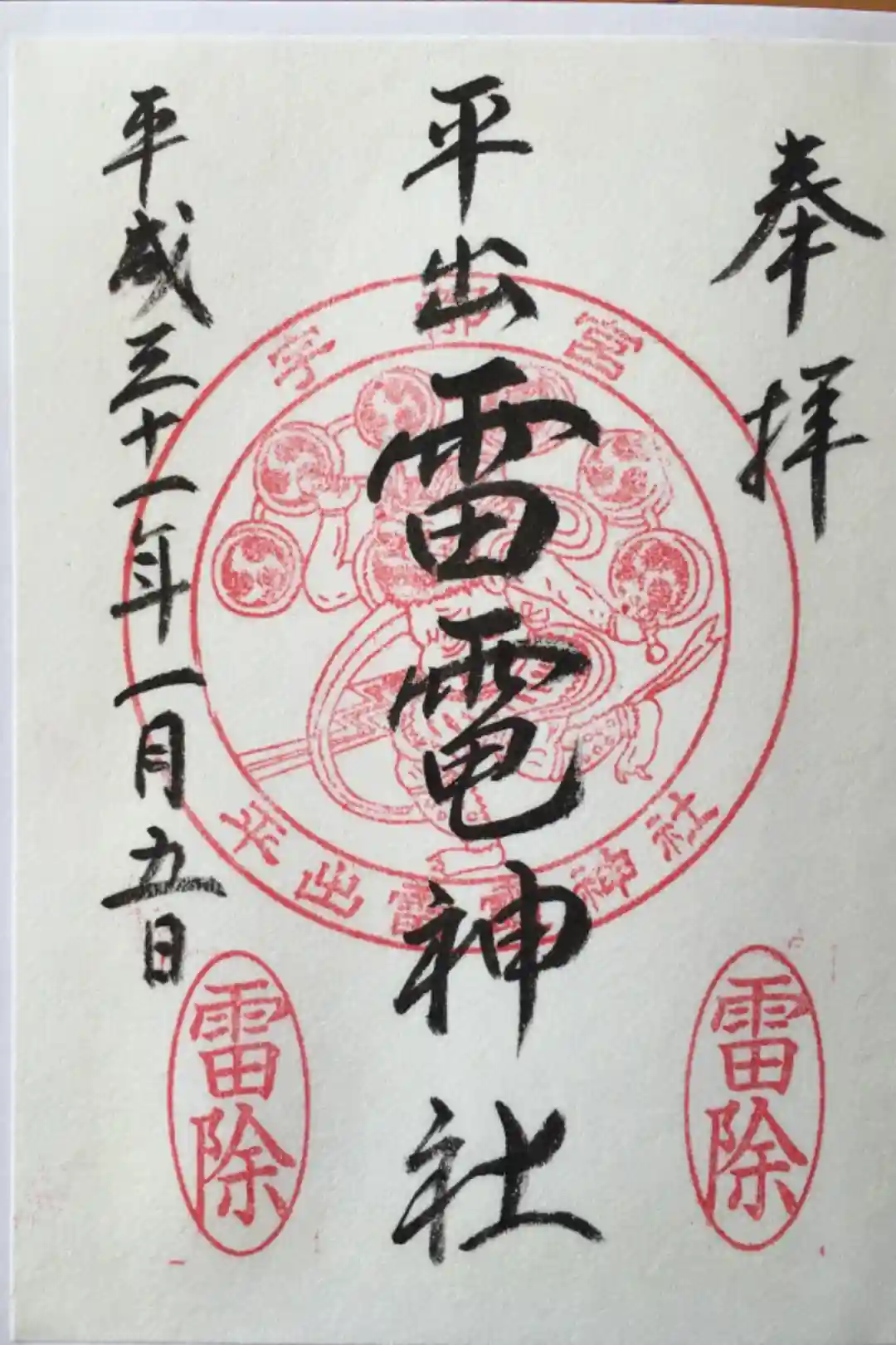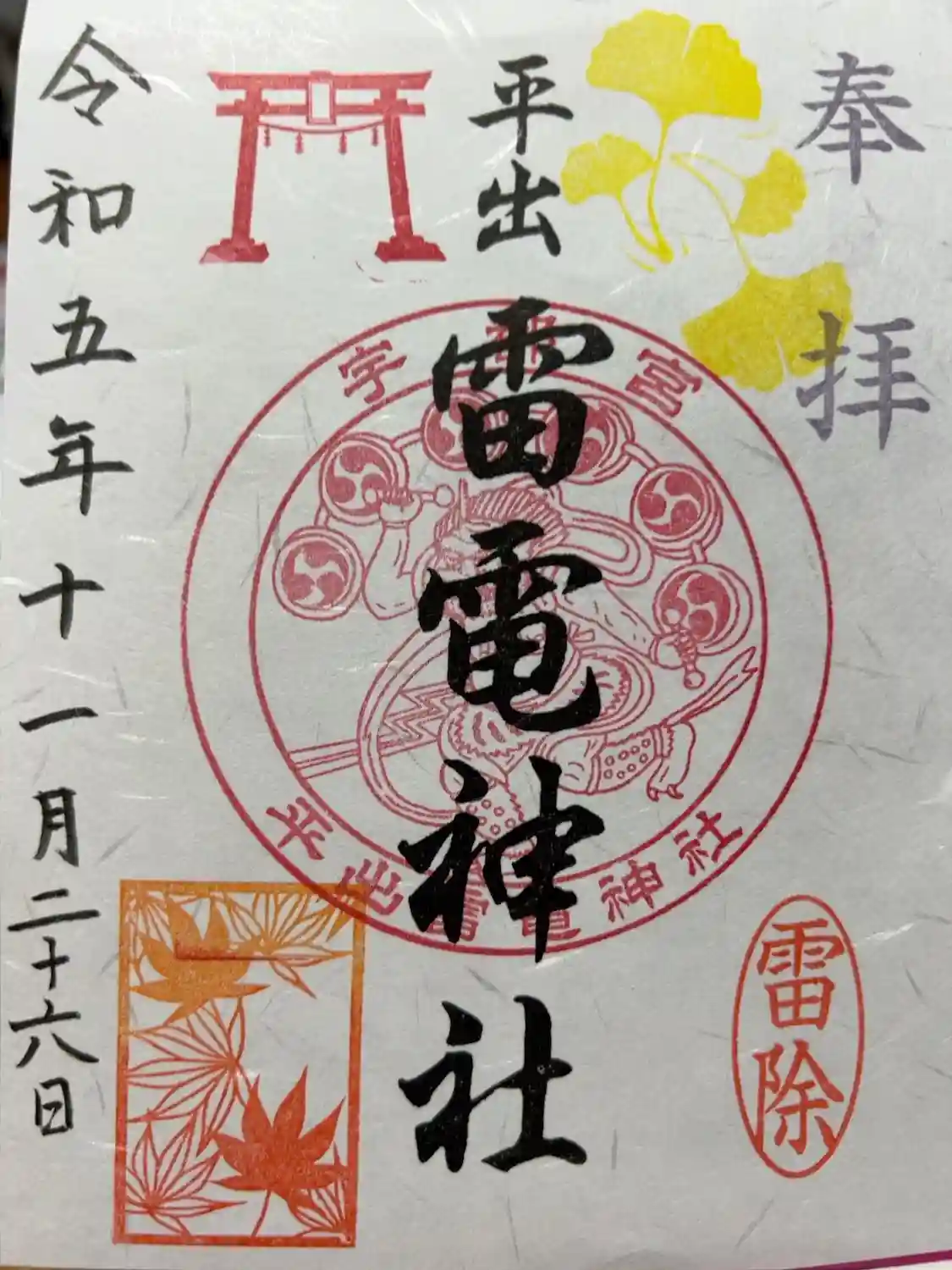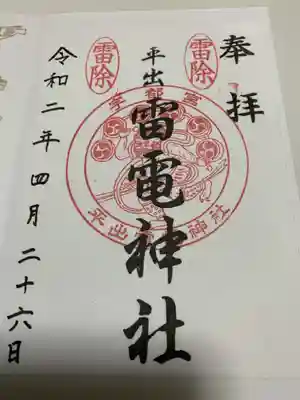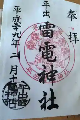 ![平出雷電神社の御朱印]()