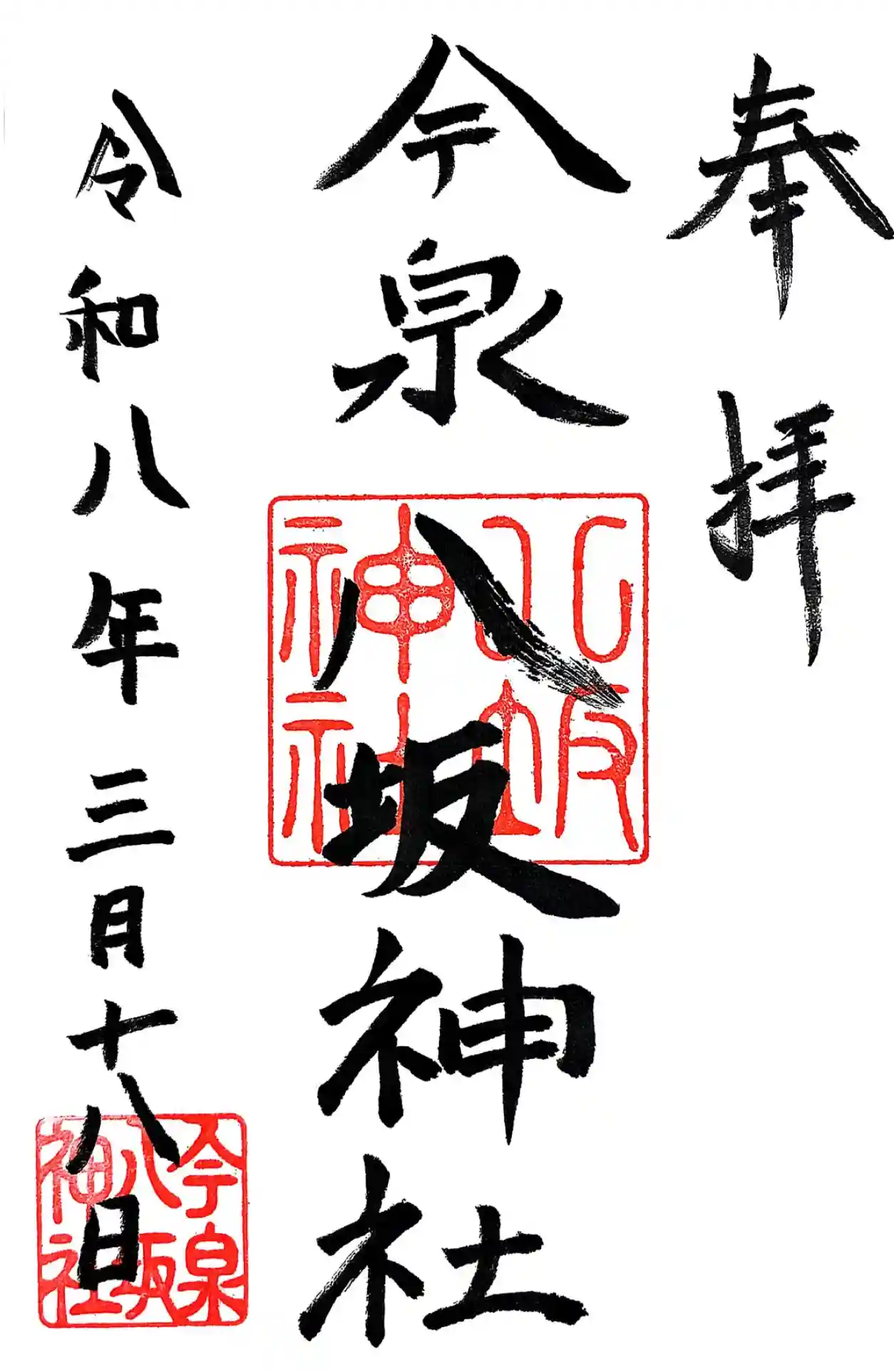 今泉八坂神社にお参りして、御朱印を頂きました。