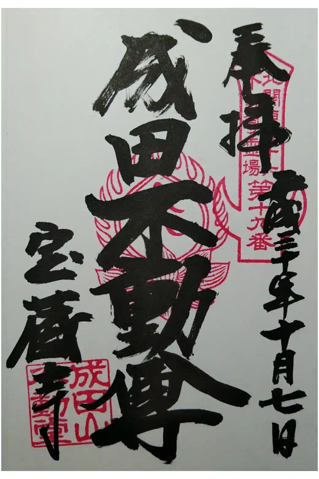 北関東三十六不動尊霊場 第十九番札所 成田不動尊、御朱印です。