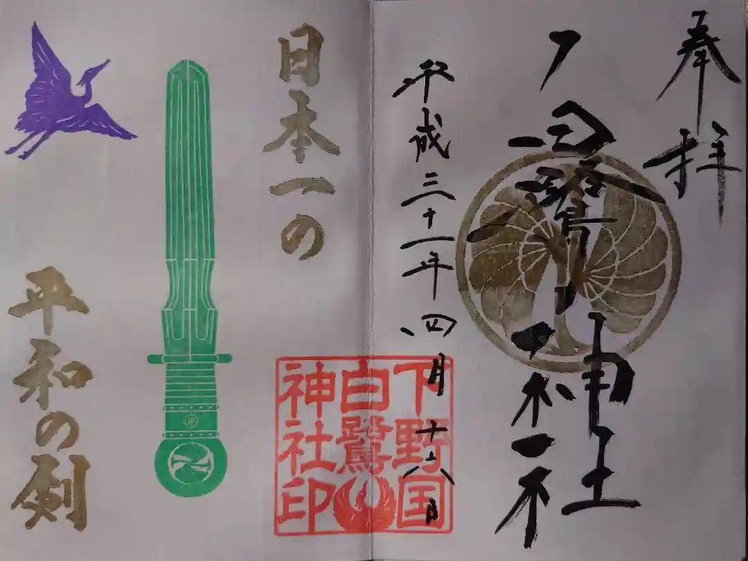 また、南北朝時代の康暦(こうりゃく)二年(1380年)小山義政(よしまさ)の軍が上三川城を攻めたとき、神社の森に群れて飛び交う白鷺を上三川城の伏兵の旗と見誤り、戦わずして退去したという逸話があり、お城を守った神様と白鷺に城下の人々は感謝し、その時より白鷺明神と言われるようになったと伝えられている。