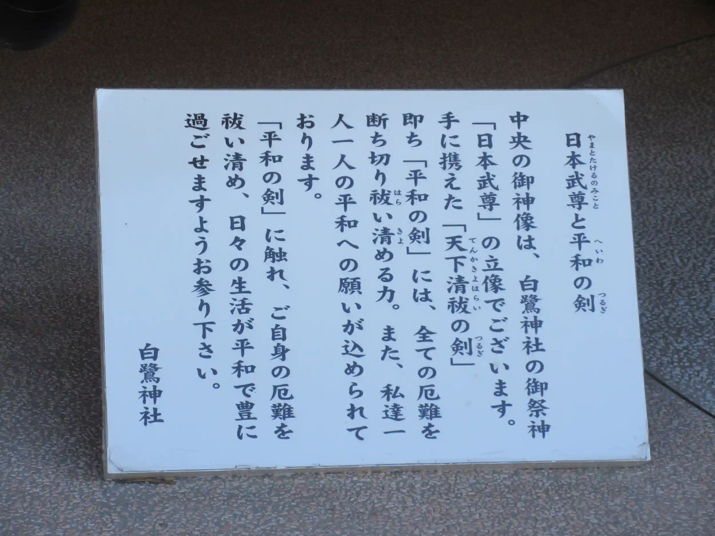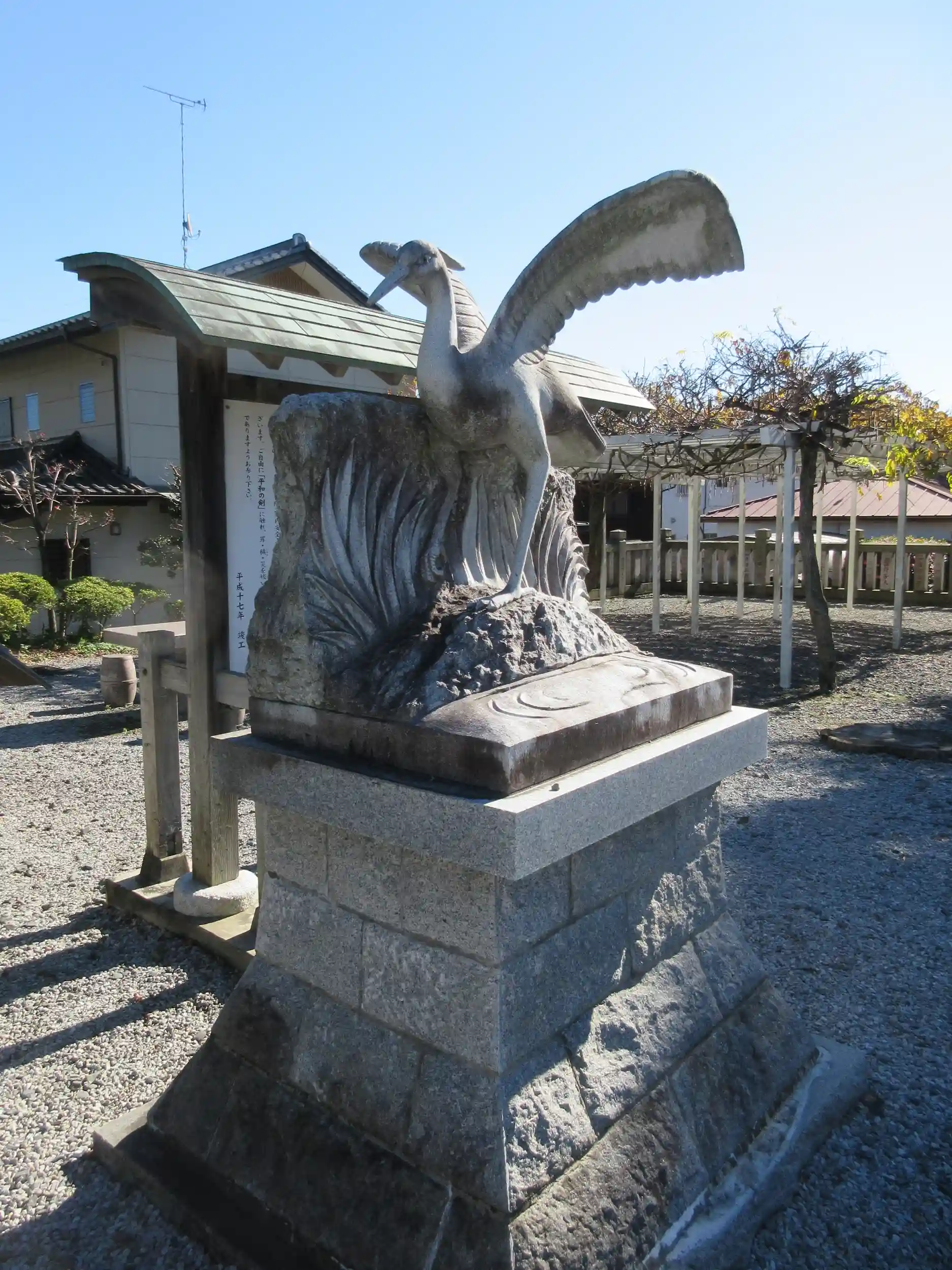 栃木県河内郡上三川町にある「白鷺神社」は、厄除け・交通安全にご利益がある神社として多くの人が参拝に訪れるパワースポットです。1200年以上の歴史があり、境内には悪運・悪縁を断ち切り、開運・良縁をもたらすと言われる長さが日本一の平和の剣(白鷺神社御鎮座1220年の記念で作られた1220cmの剣)があります。平和の剣をなでると悪運・悪縁等の災い事を断ち切り、開運・良縁(幸せ)をもたらすご利益があると言われています。白鷺神社は783年に疫病が大流行した時、国守平松下野守(文野高島)が日本武尊〔やまとたけるのみこと〕の神託によって、疫病退散の祈願のため一祠を建てて祀ったのが始まりと伝えられています。和の剣の中央に立つ御祭神、日本武尊像。代十二代景行天皇の御子として、日本が一つにまとまり、豊な国となるよう全国を旅されました。亡くなられた後、白鳥と化して飛び立ったことから、白鳥が飛来し、人々の生活を見守った話など、命に関する話は数えきれないほど伝えられています。