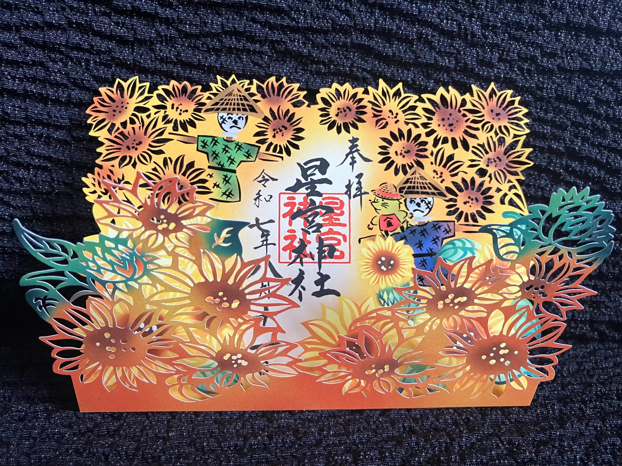 トトロの中にも神棚があり、どんぐりがたくさんお供えされていました。かわいかったです。お伺いした時は、【風のとおり道】の曲の通り、風が吹き抜ける良い空気感の中参拝させていただきました。切り絵の御朱印は、凝ってますね…!!ポケットタイプの御朱印帳に入れた方が良さそうかな?