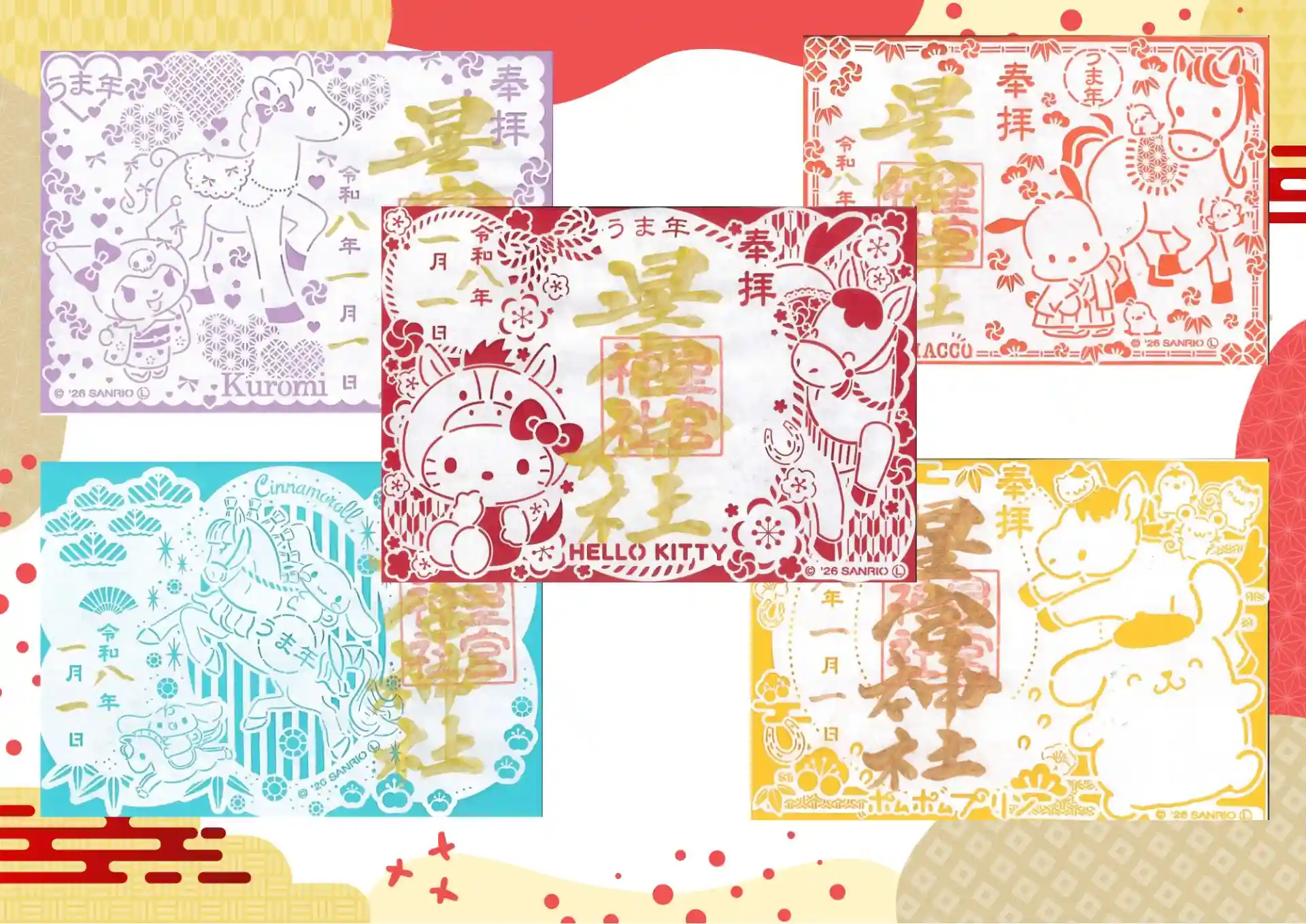 1月1日より各種のサンリオ切り絵御朱印を