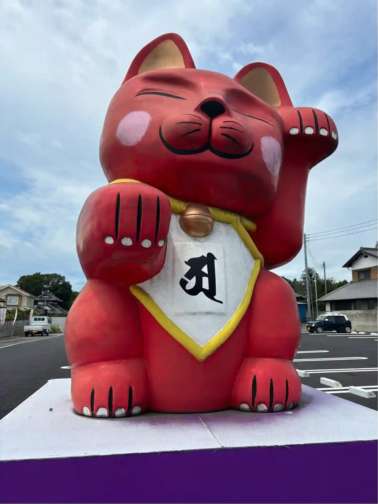 紅白の大きい招き猫がお出迎え。境内にも小さな猫ちゃんが…。奥には銭洗弁天様がいらっしゃいました。