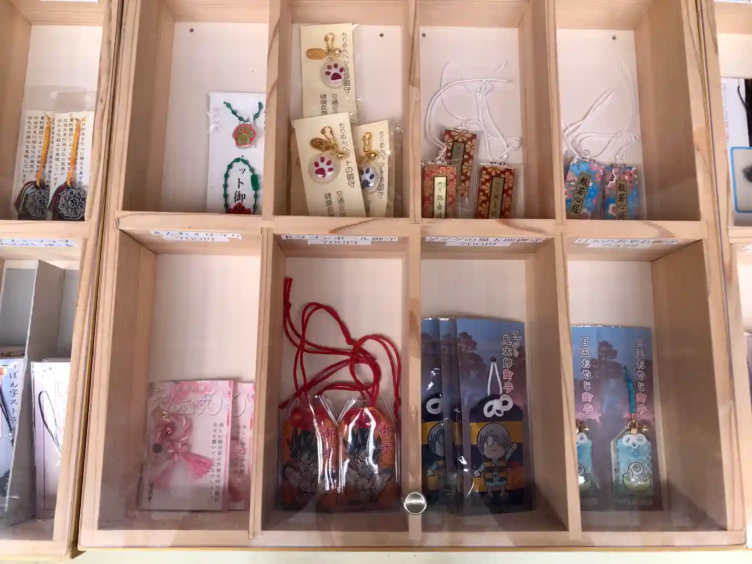 悟空お守り、鬼太郎お守り、目玉のおやじお守り。