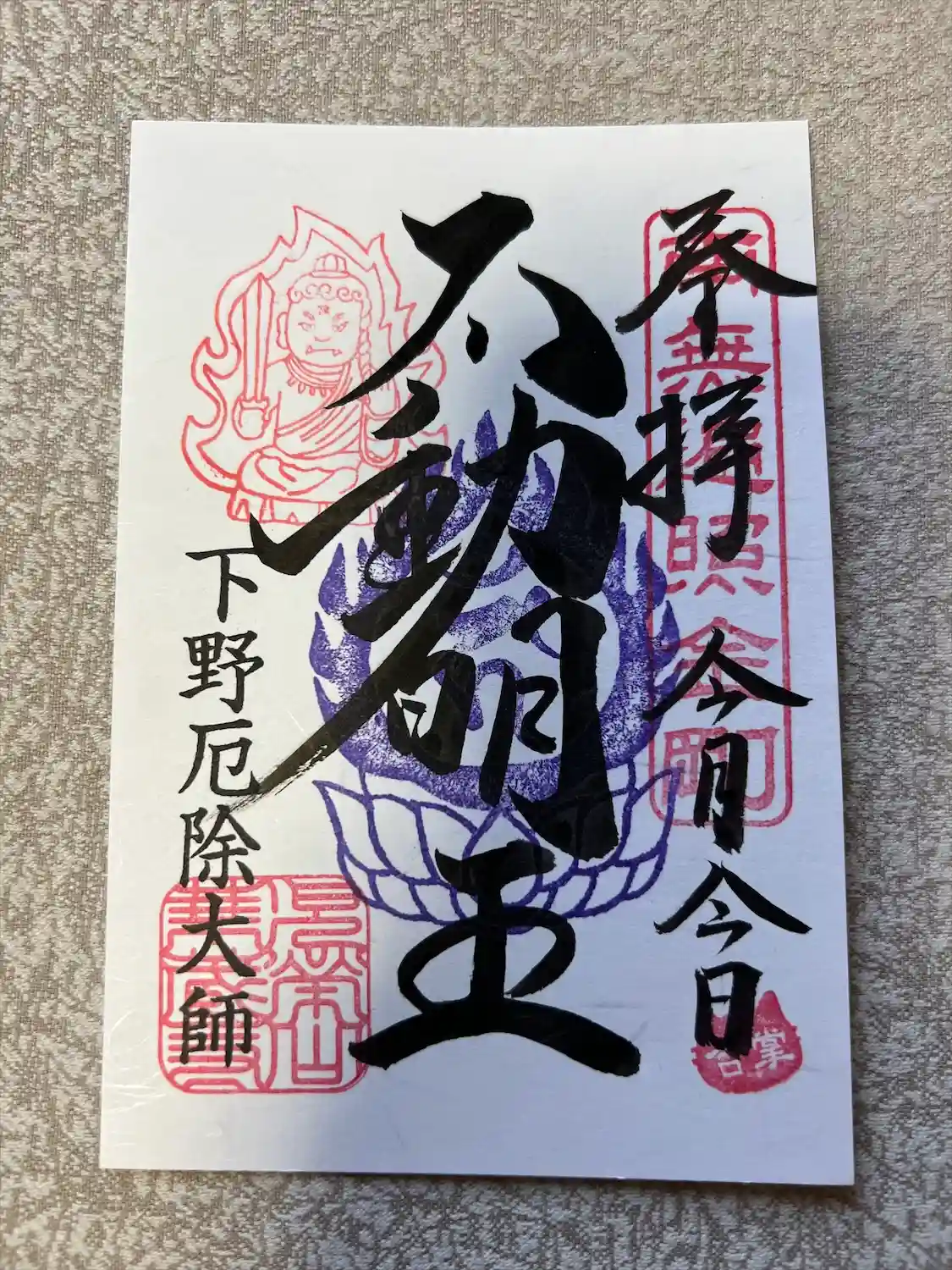 今回は御本尊の不動明王の書き置き御朱印です