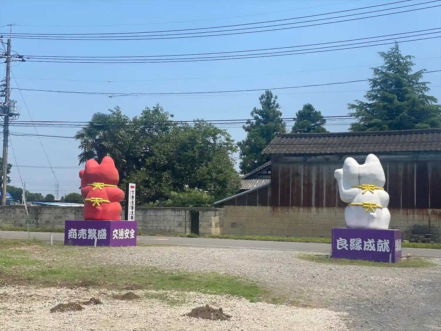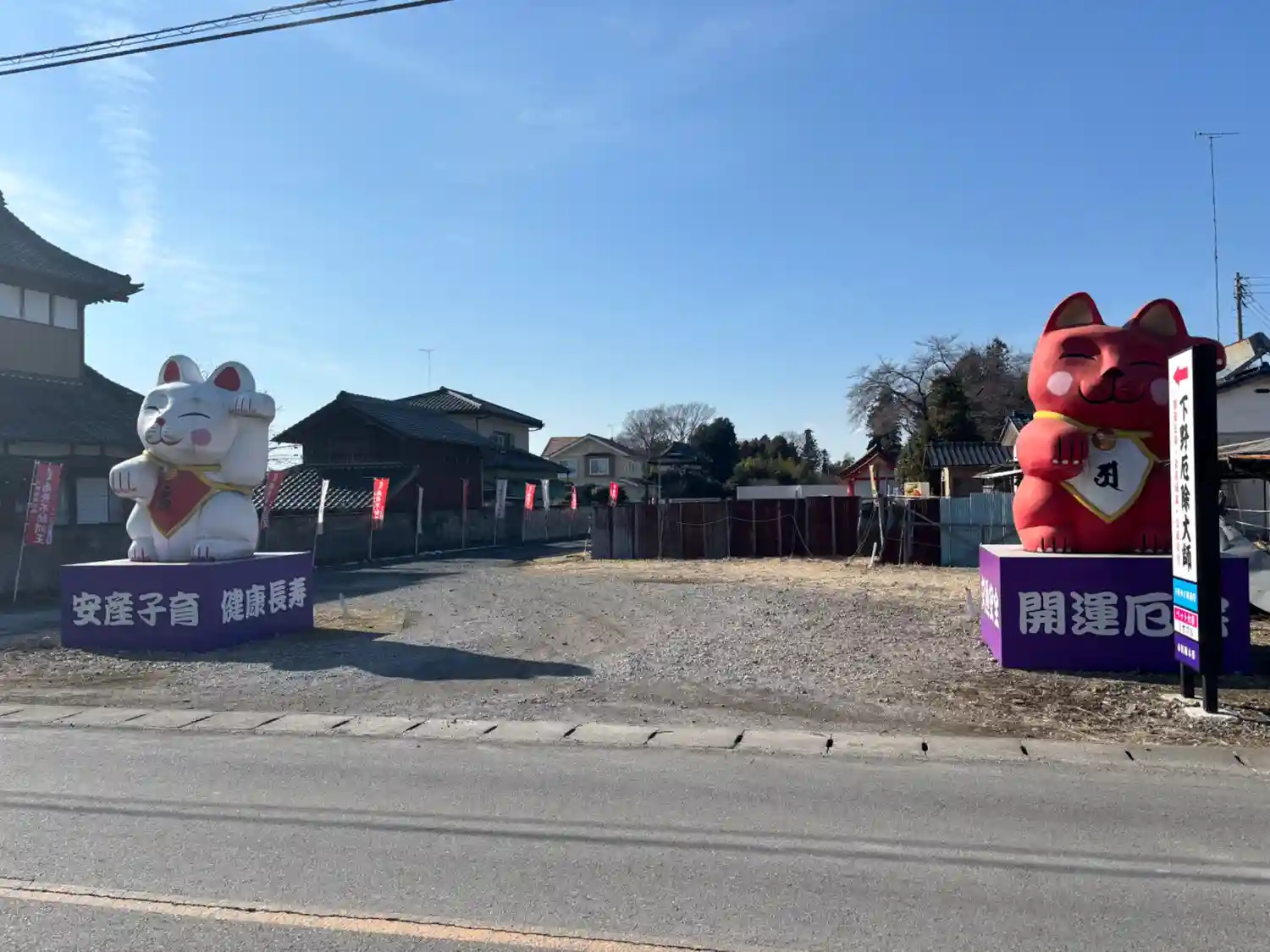 住宅街のキツめのカーブを曲がったら突如紅白の招き猫が出迎えてくれるお寺。檀家さんがお墓参りに来てい…