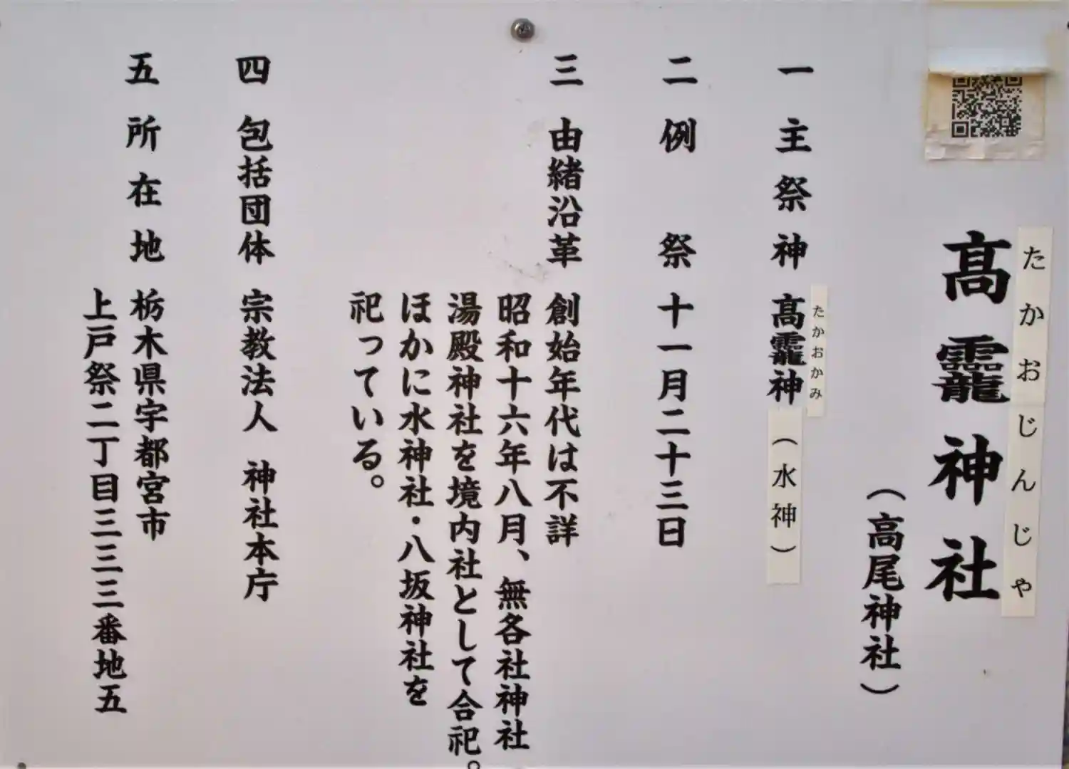 | ご祭神 | 《主》高龗神 |