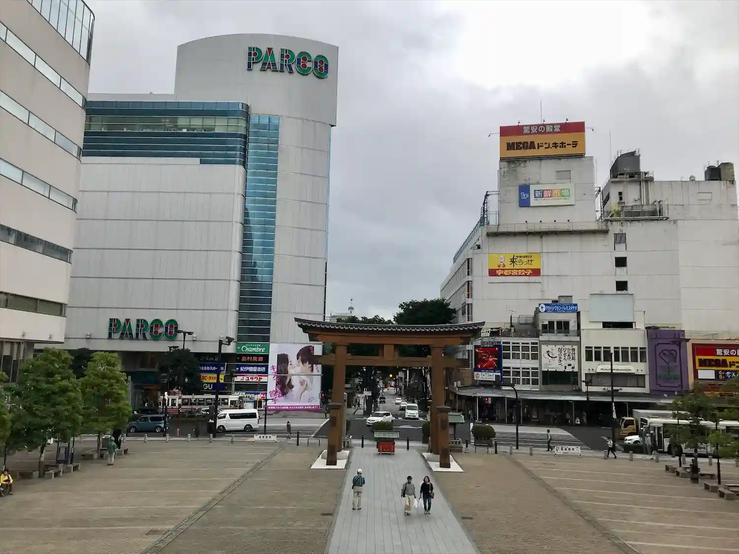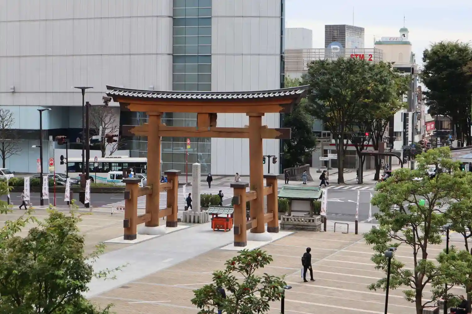 宇都宮駅前の大通り沿いにある二荒山神社。
