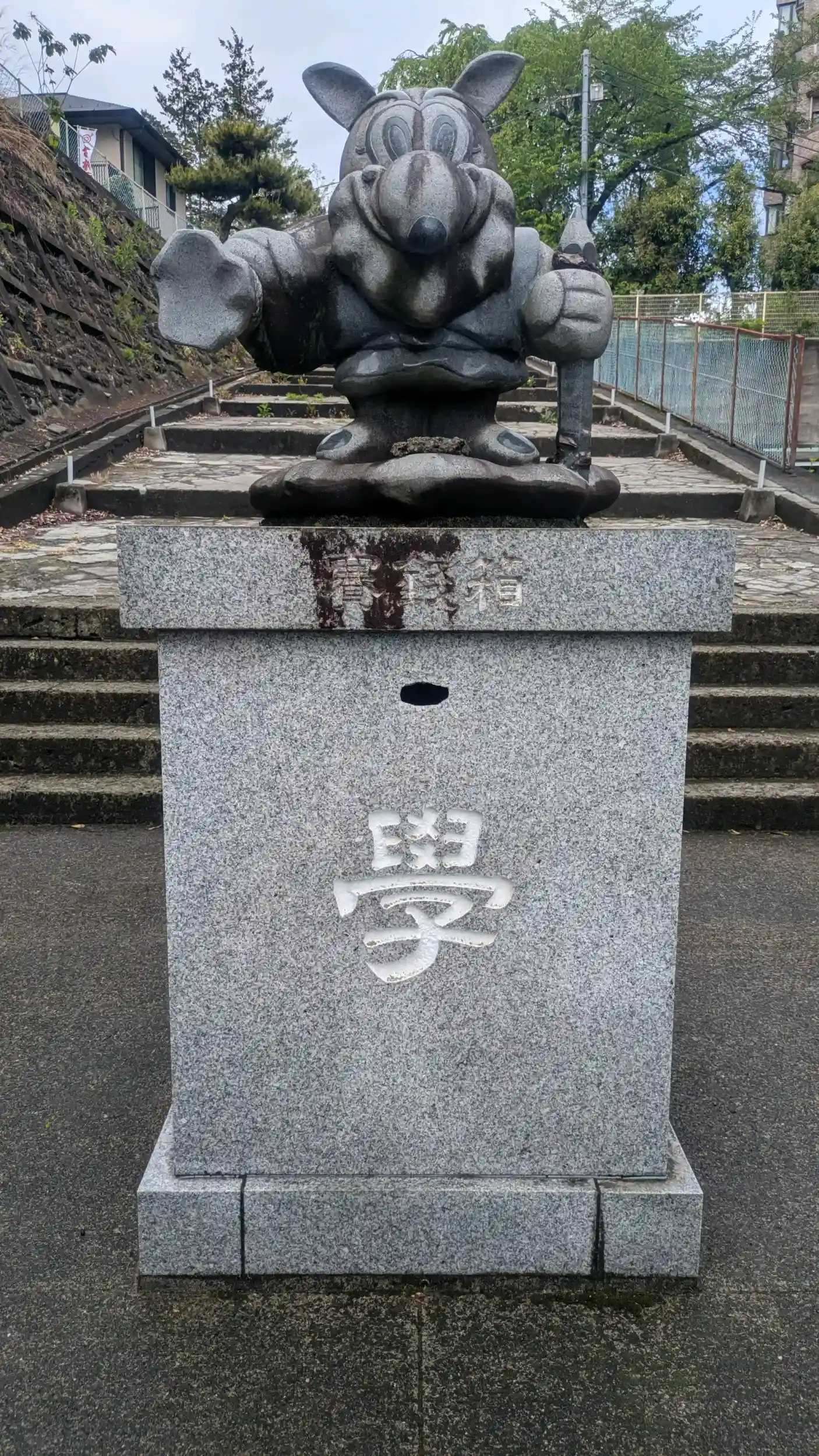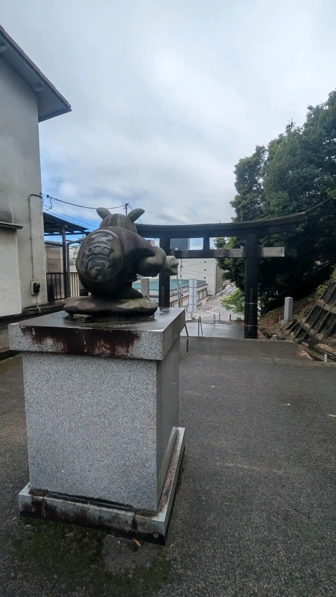 下野夢福神を探して 蒲生神社に参拝に来ました 一の鳥居の辺りに ドンといらっしゃいました 宇都宮中心地にある八幡山公園に隣接する 市民が集まる 雰囲気のよい神社でした