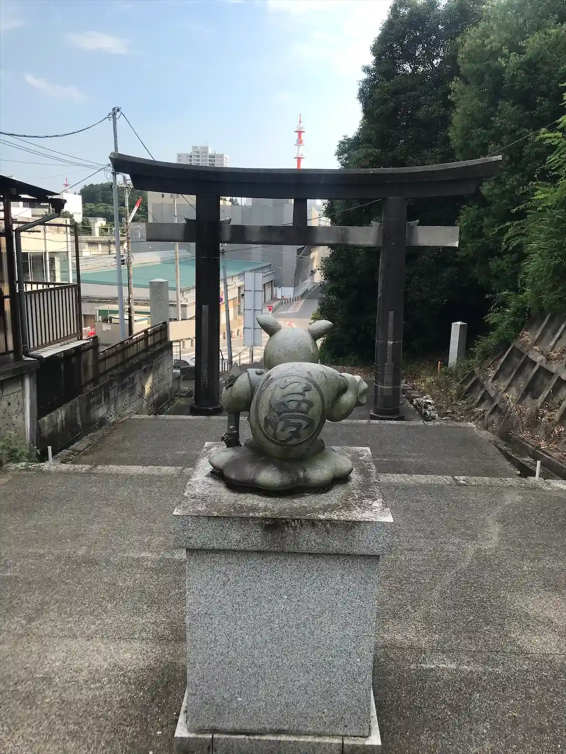 鳥居のそばにあったゆるキャラっぽい石像の背中。