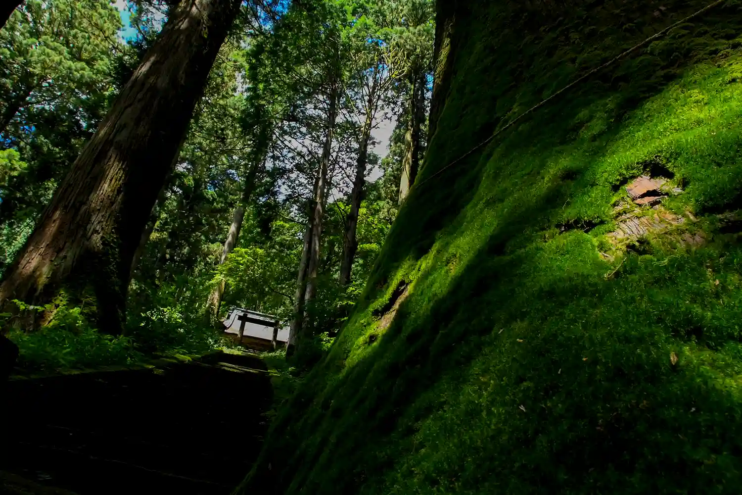 向こうに奥宮への参道がみえます。
