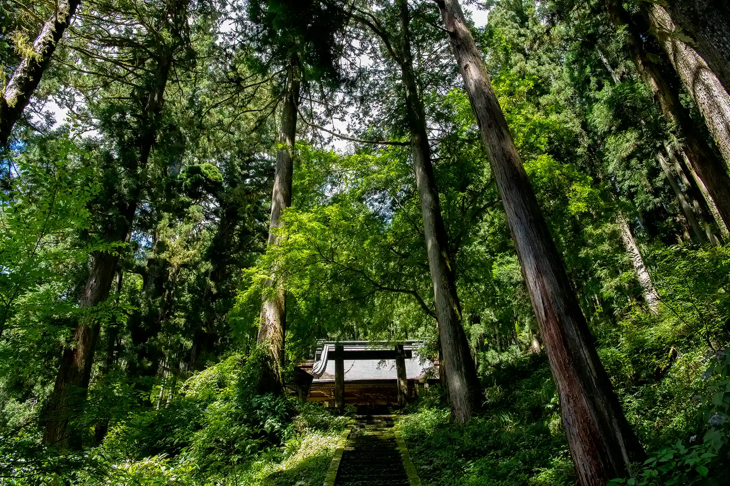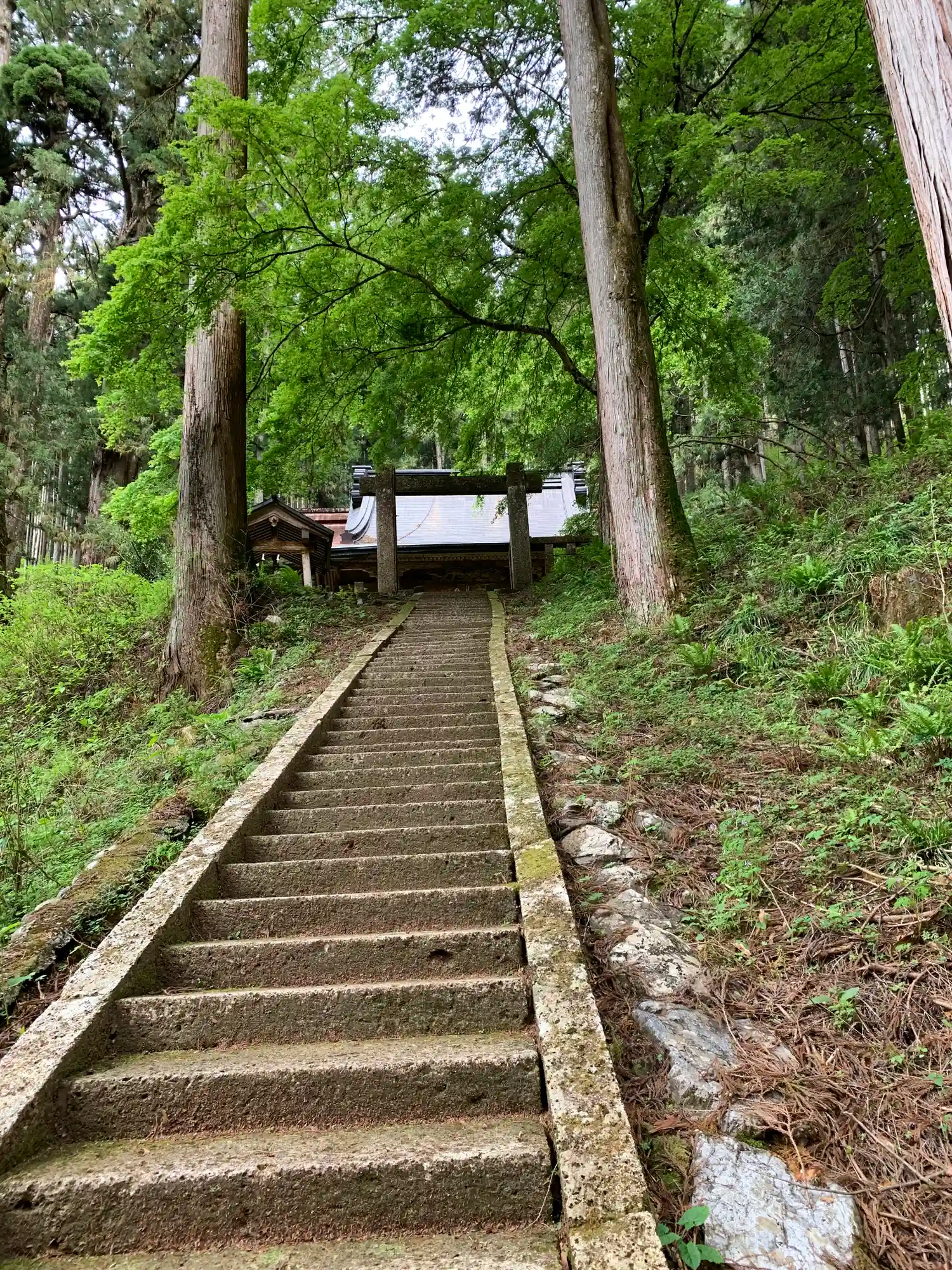 立派な杉の間の石段を登ります。