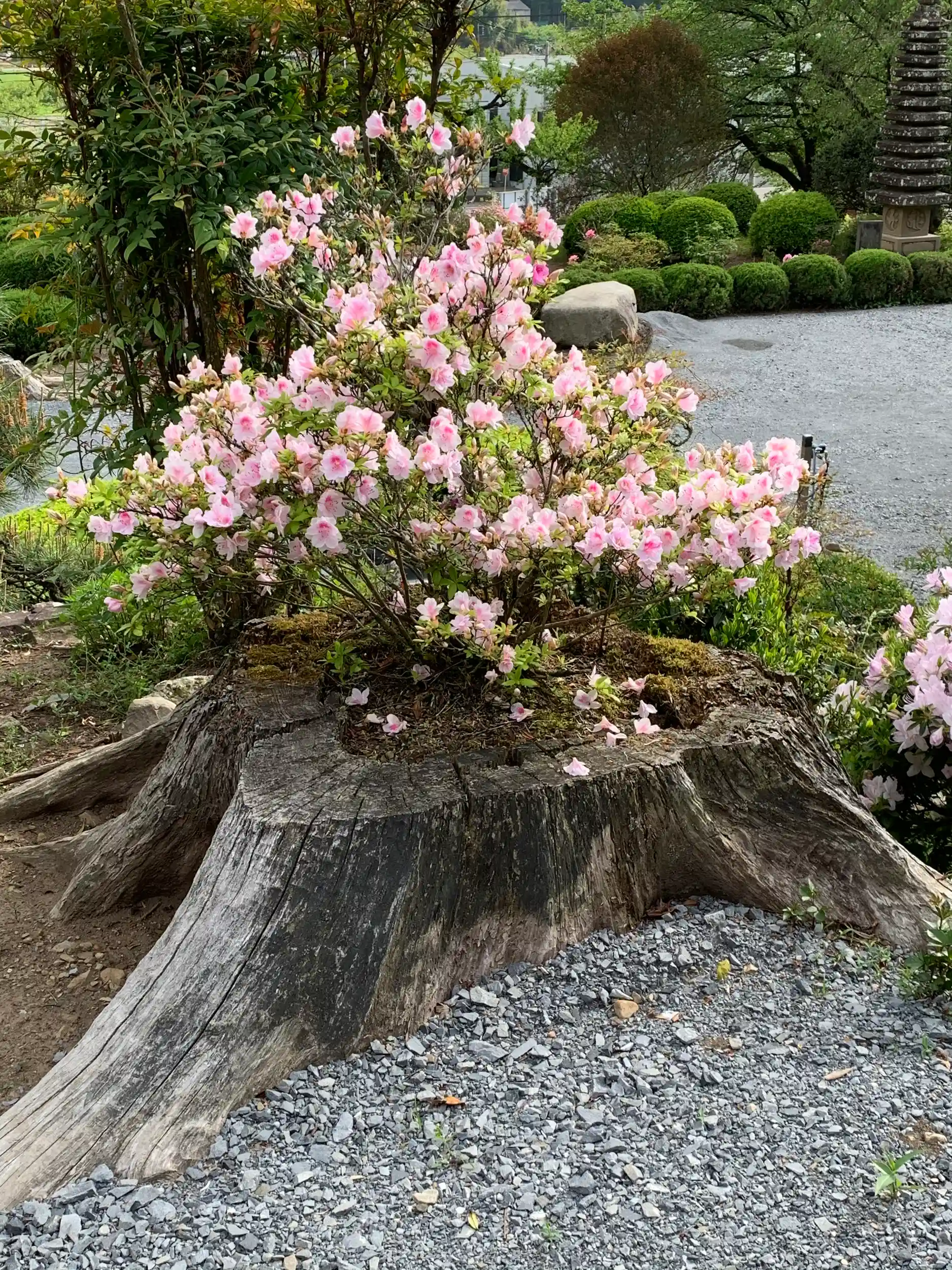 切り株からツツジ