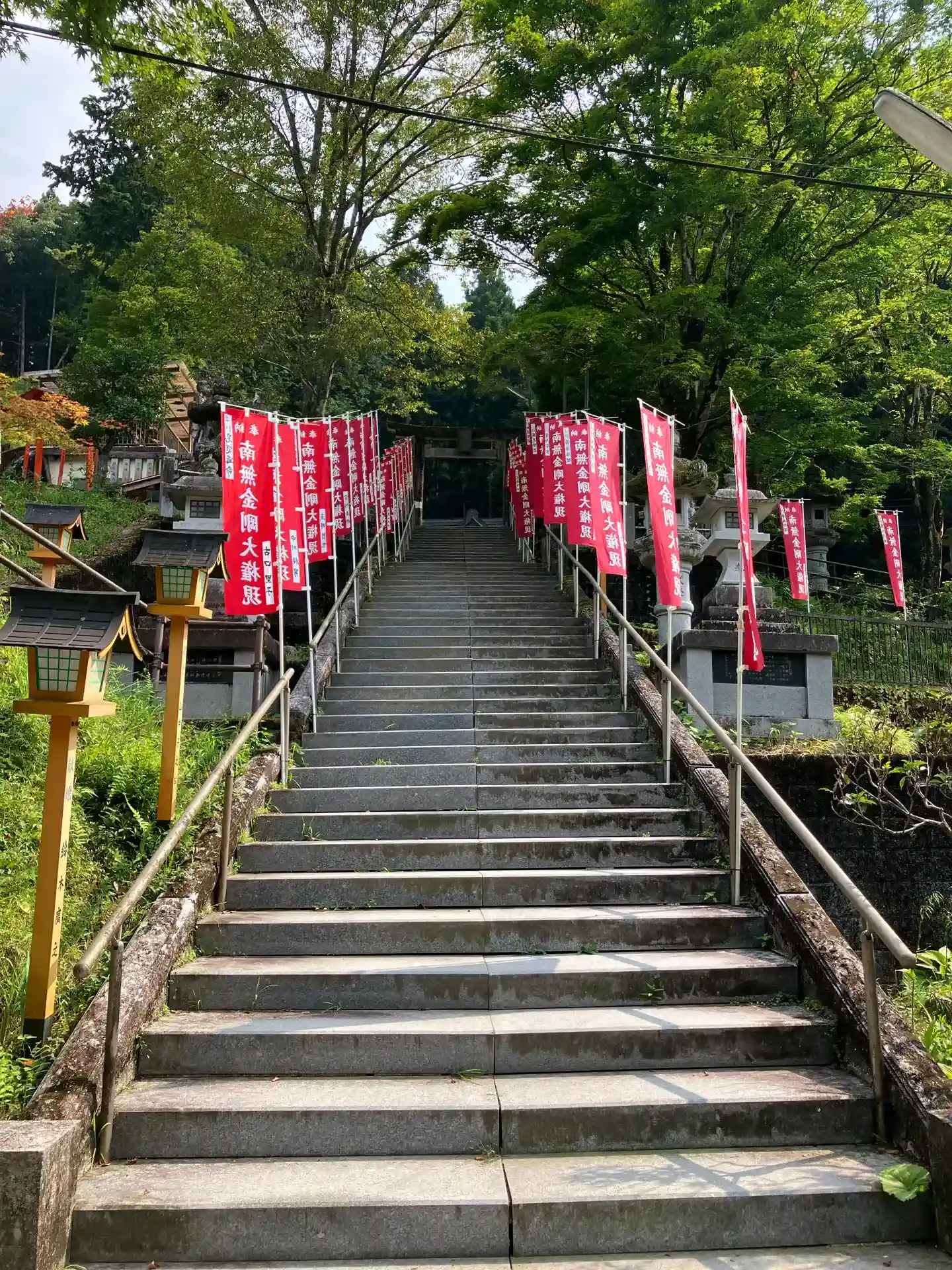 古峯神社に向かう途中に突然現れた不動明王像にひかれ参拝。お寺なのに鳥居⛩️?朝7時半にも関わらず御朱印頂けました♪。