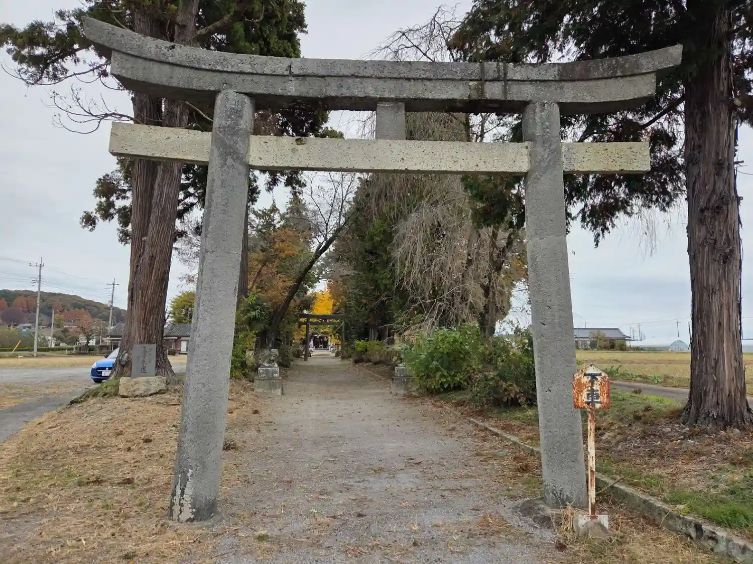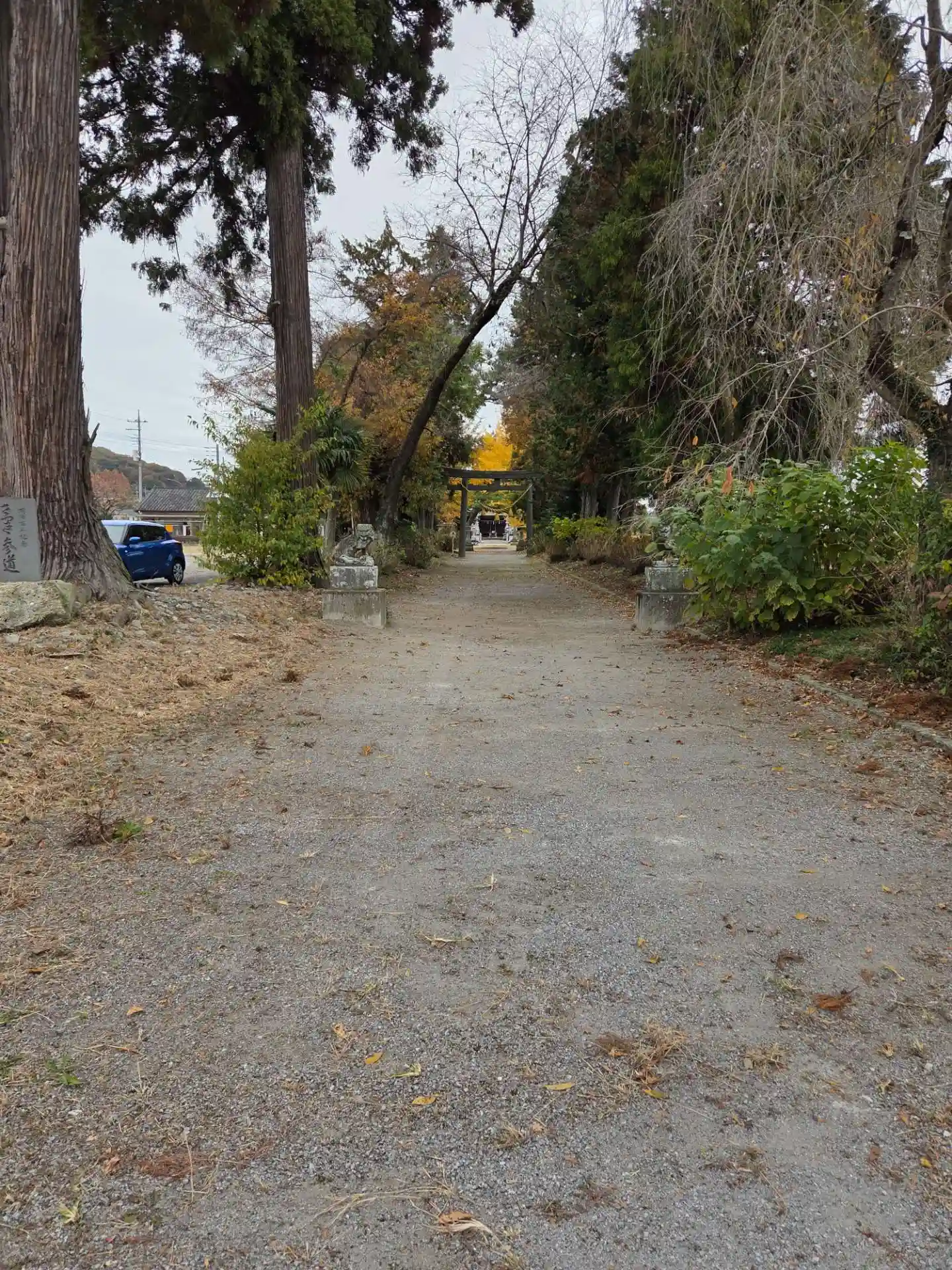 ニノ鳥居からの参道は道路が横断しています。