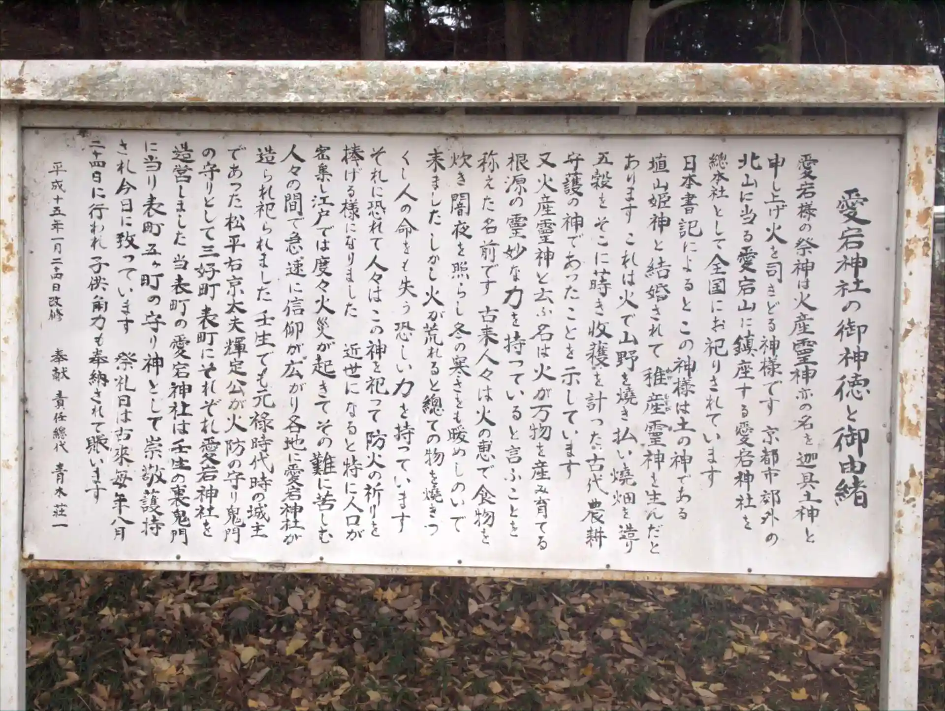 京都愛宕神社から勧請された火防の神、迦具土神を祀。
