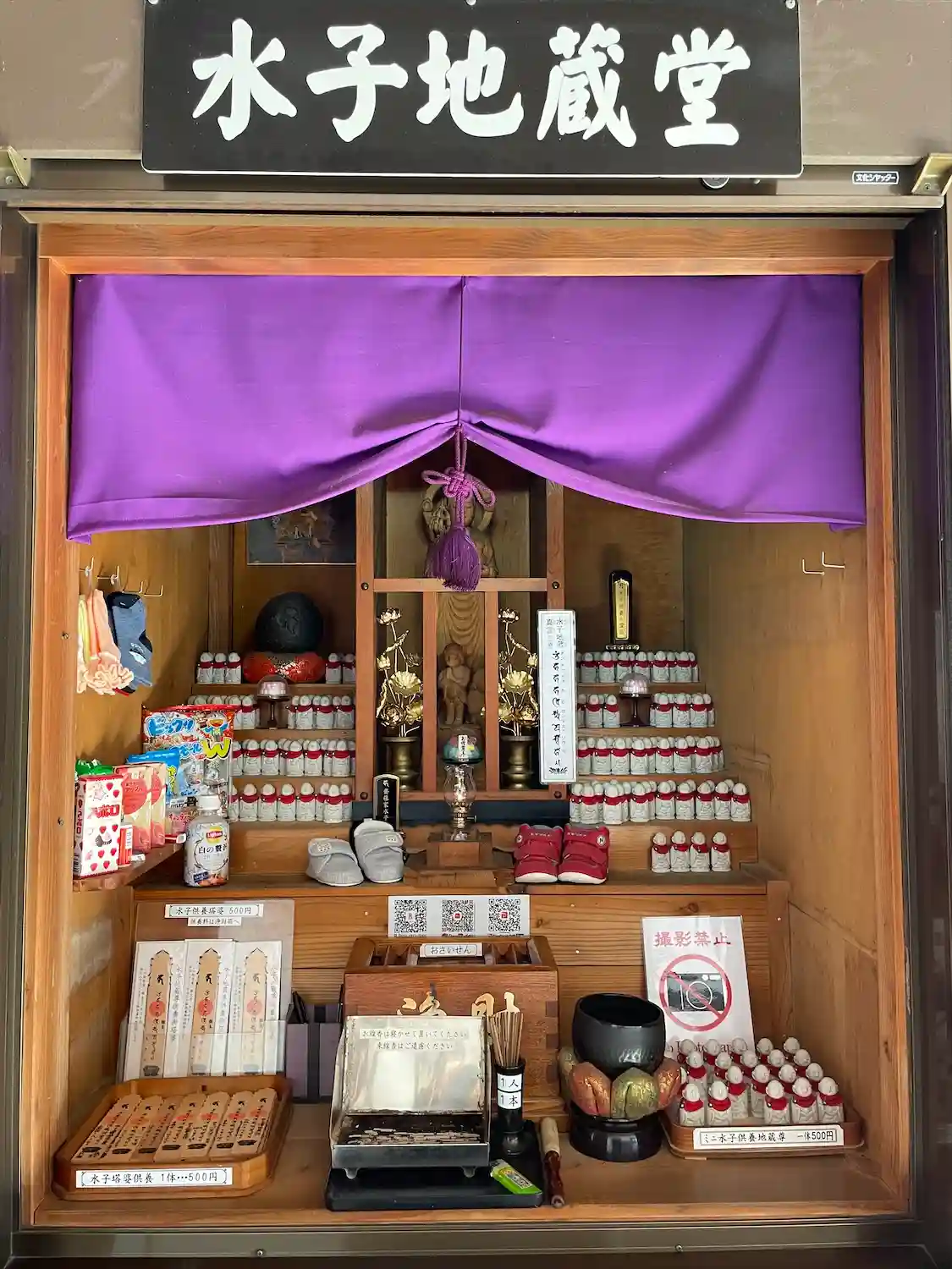 本堂(不動明王)、愛染堂、閻魔堂、銭洗い水掛不動堂などがある。