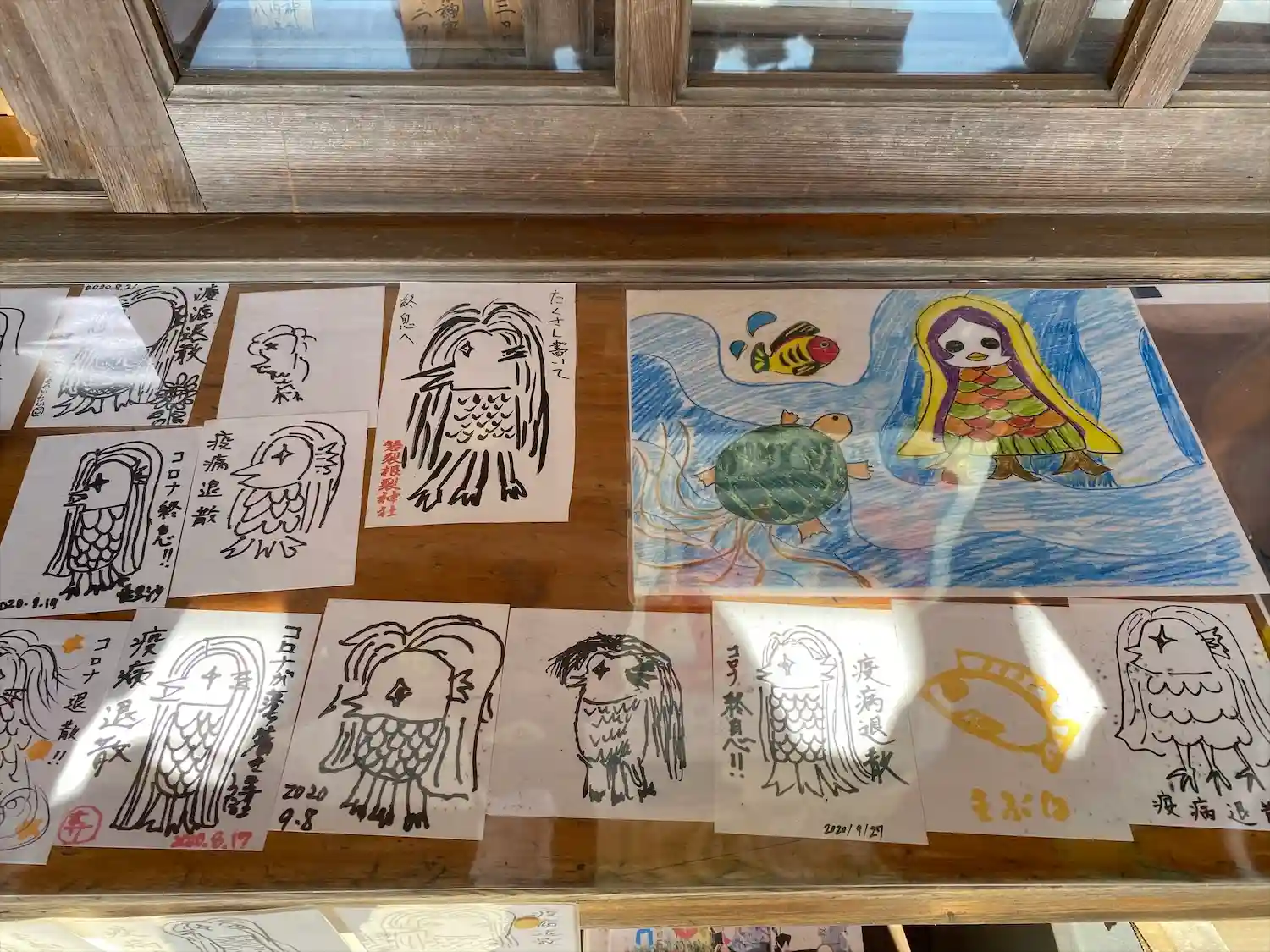 地元の学生が描いたと思われる黄ぶなやアマビエ