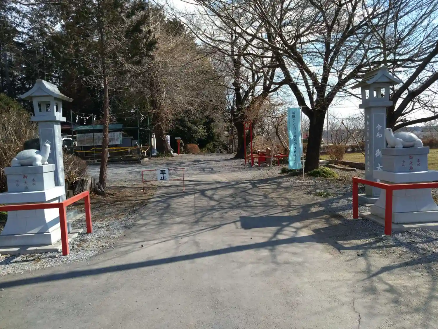 神社の裏手に大きな駐車場があります。