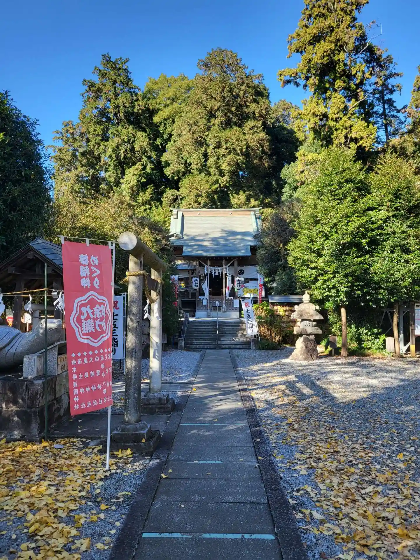 のどかな田園風景の中、こんもりとした古墳の上に鎮座。宇都宮市との境に有りました。参道にはドングリが…