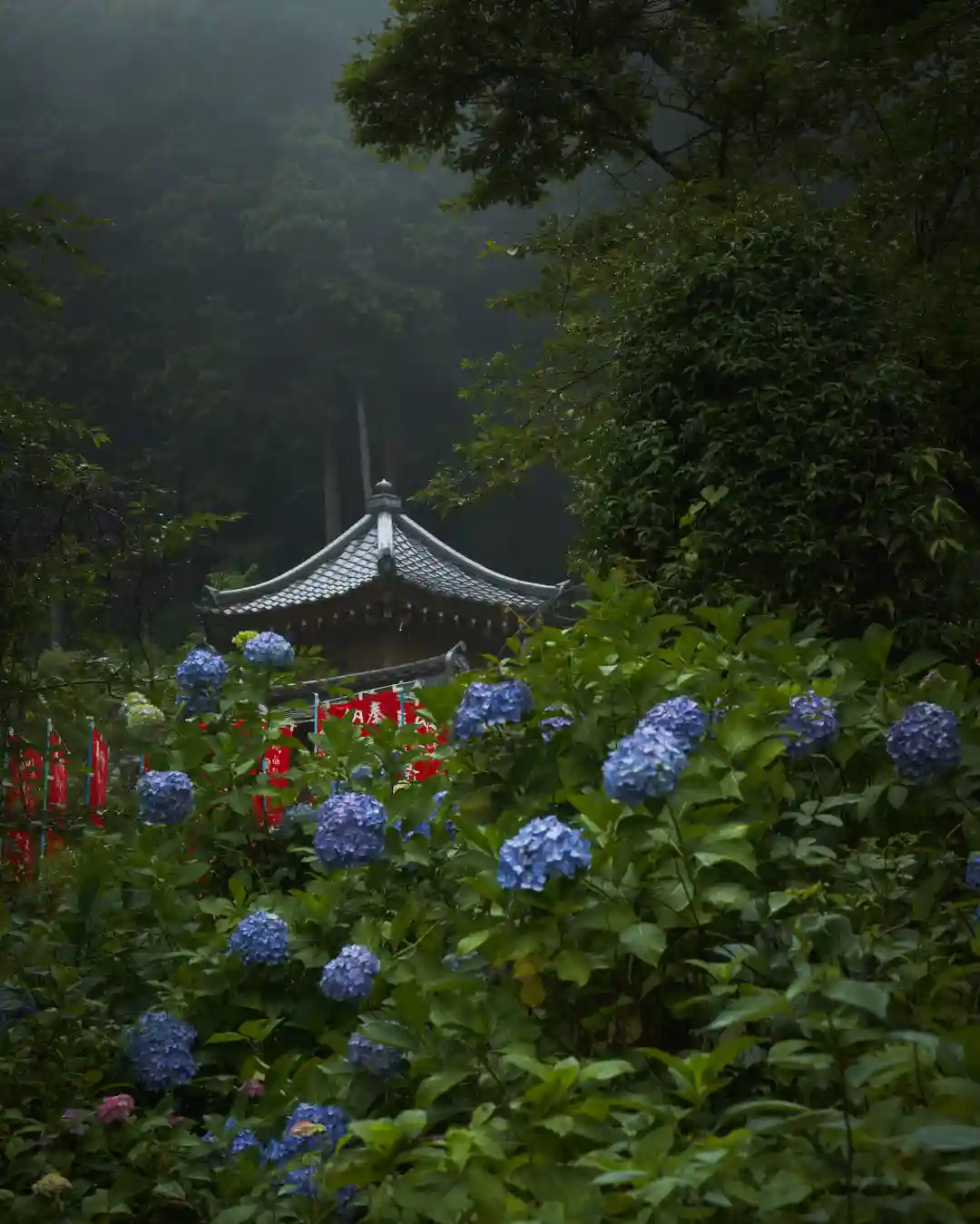 紫陽花と六角堂