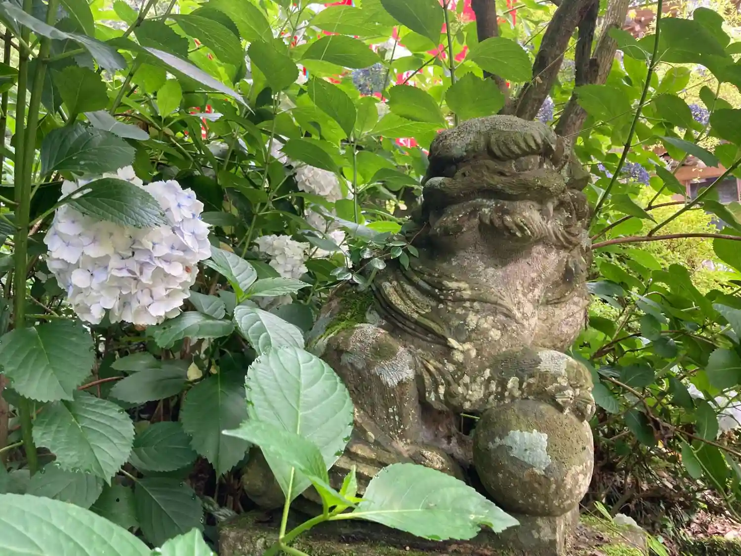 紫陽花と狛犬さん