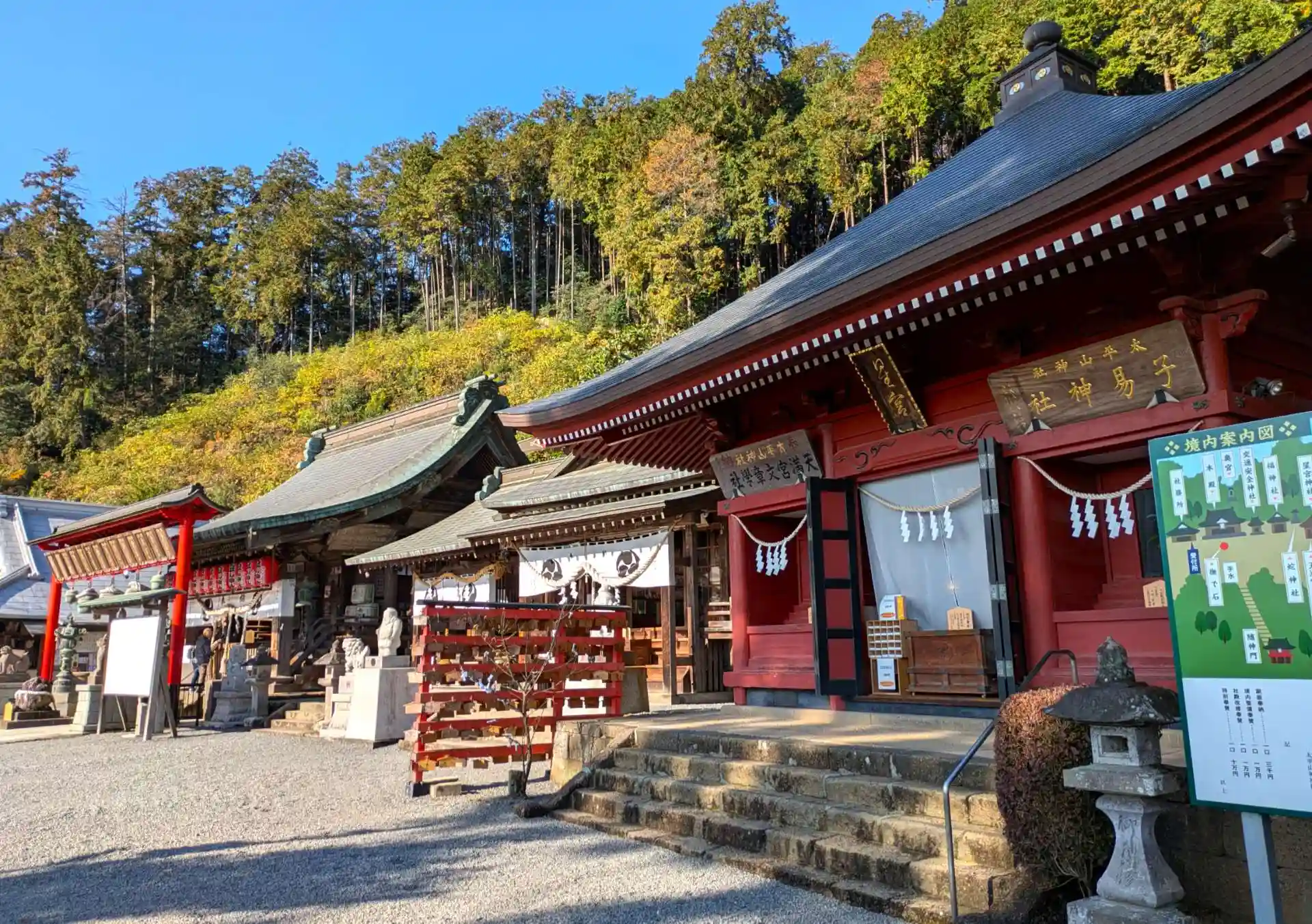 秋晴れの早朝に清々しいお詣り。紅葉はまだもうちょっと先。