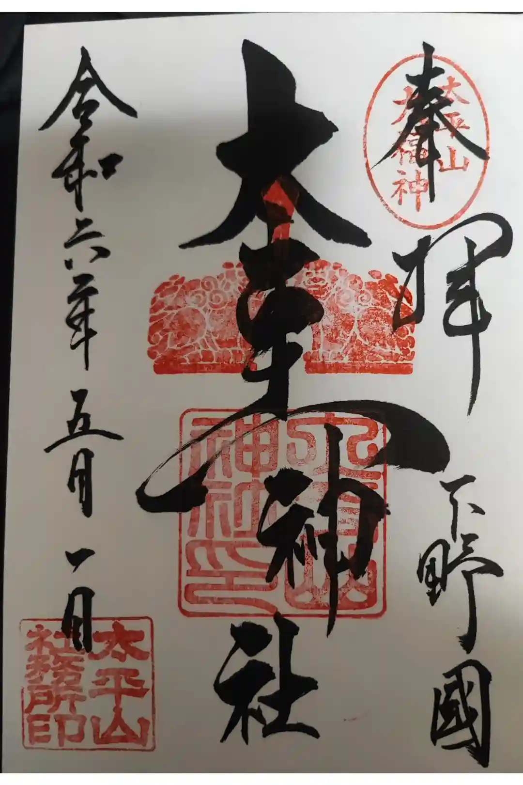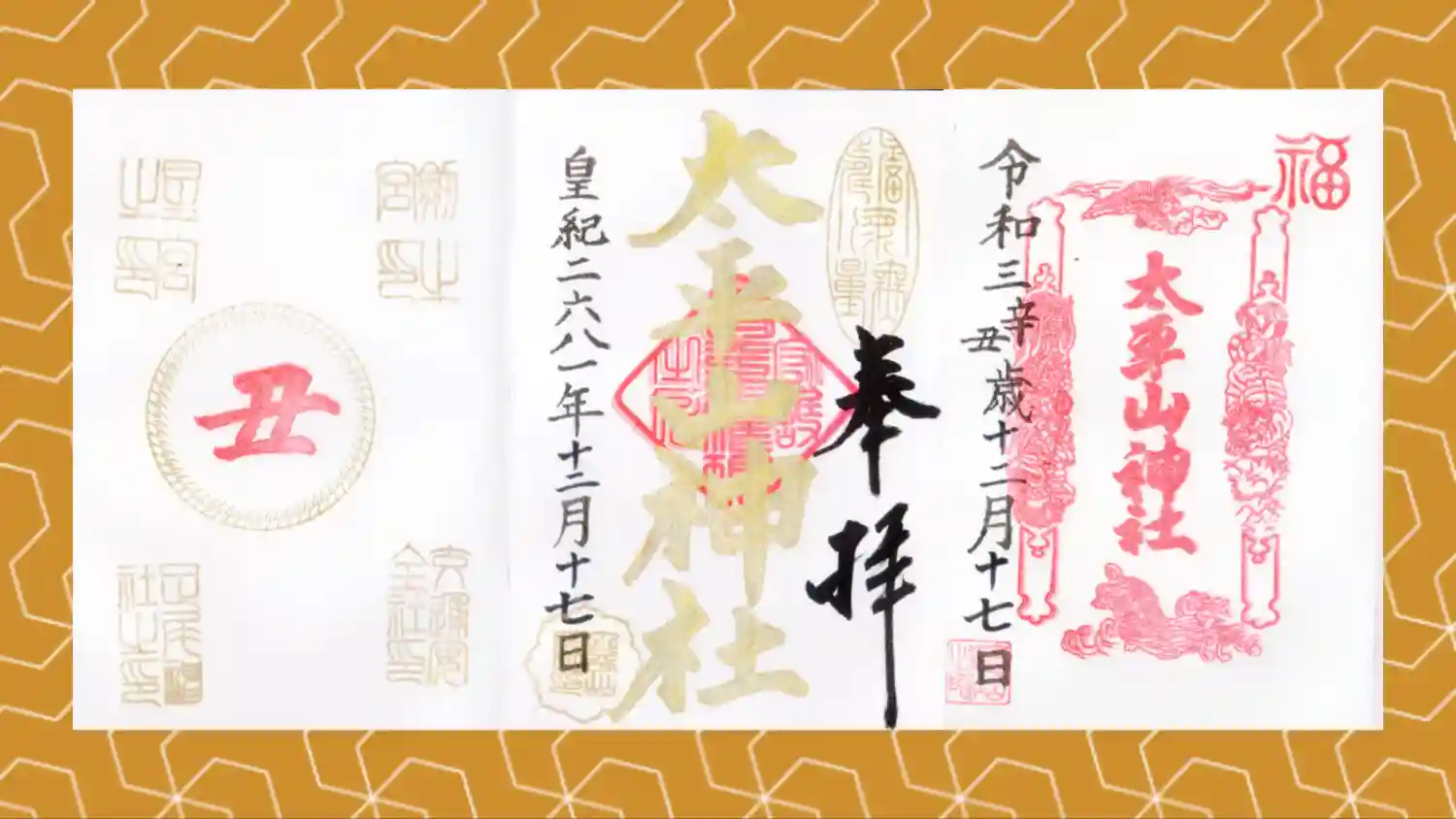 真ん中に大平山神社の印が押された御朱印と、二面見開きの御朱印があります。