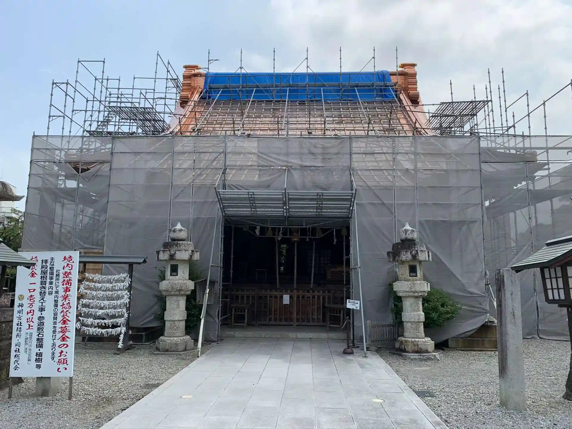 拝殿が改修工事中だった。